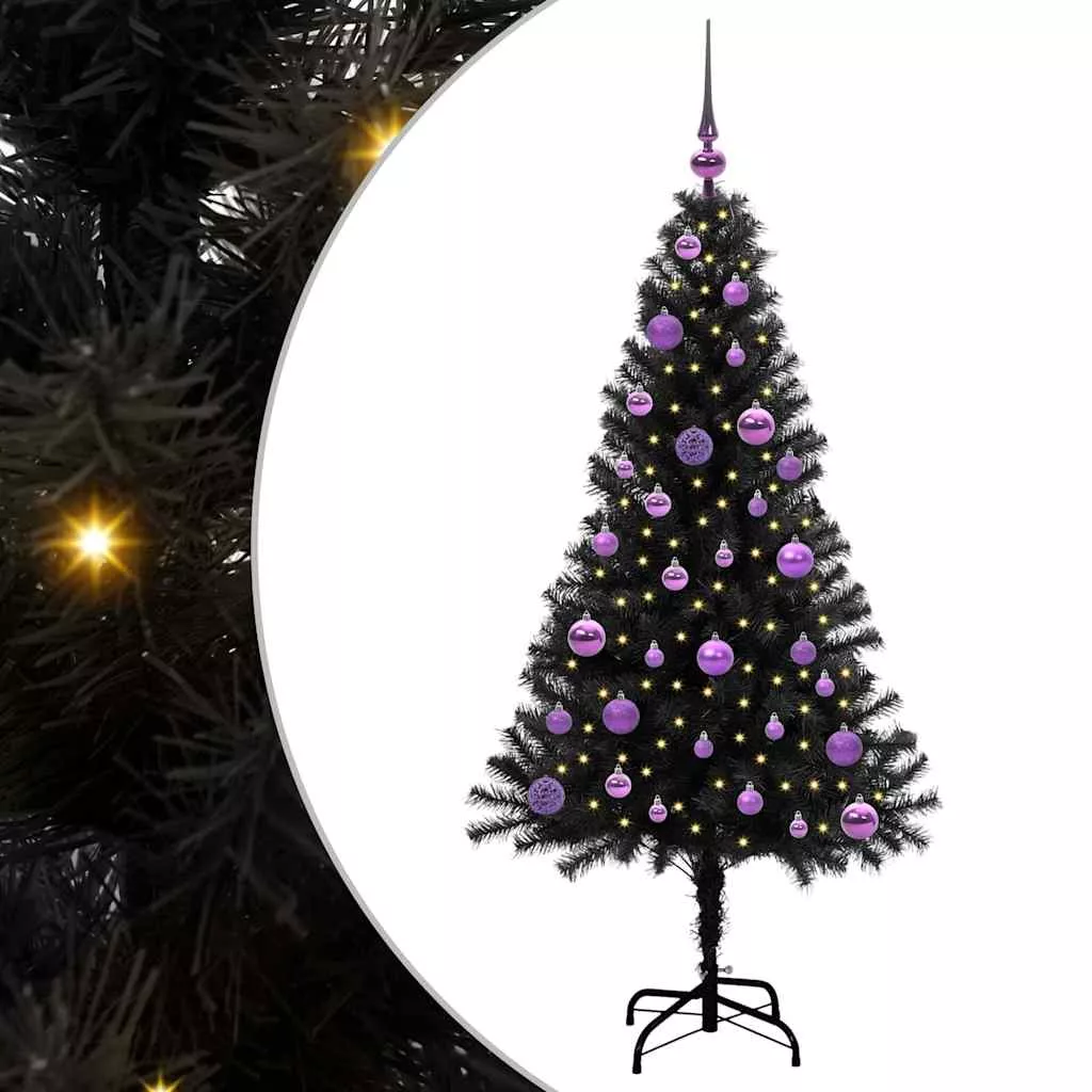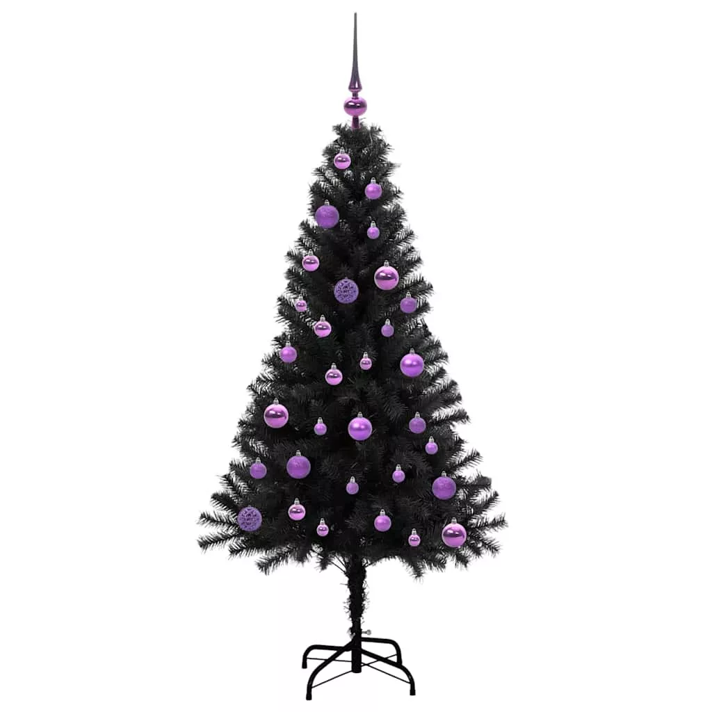 vidaXL Karácsonyfa 150 LED-del állvánnyal Fekete 150 cm PVC