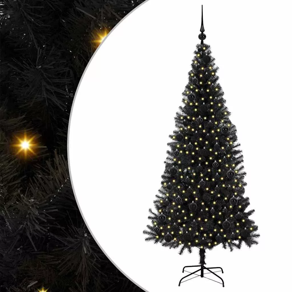 vidaXL Karácsonyfa 300 LED-del állvánnyal Fekete 180 cm PVC