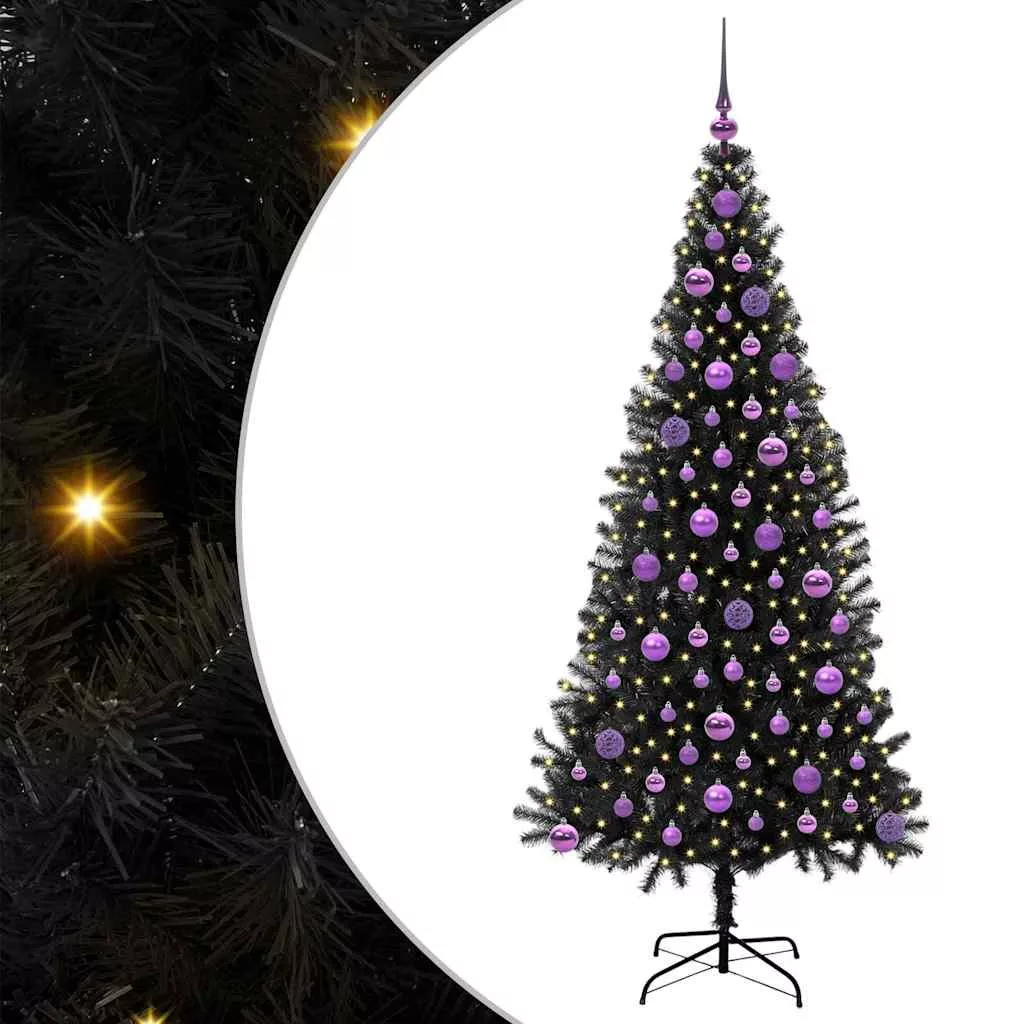 vidaXL Karácsonyfa 300 LED-del állvánnyal Fekete 180 cm PVC