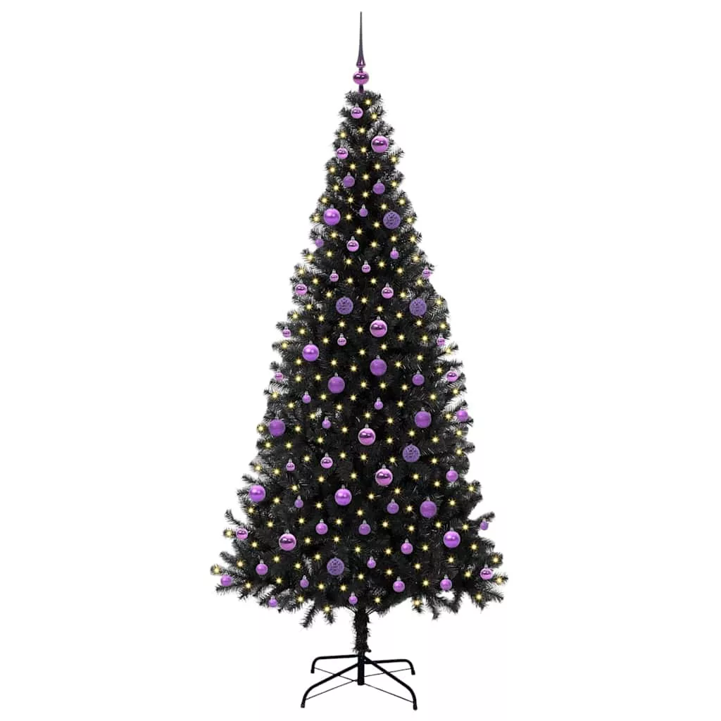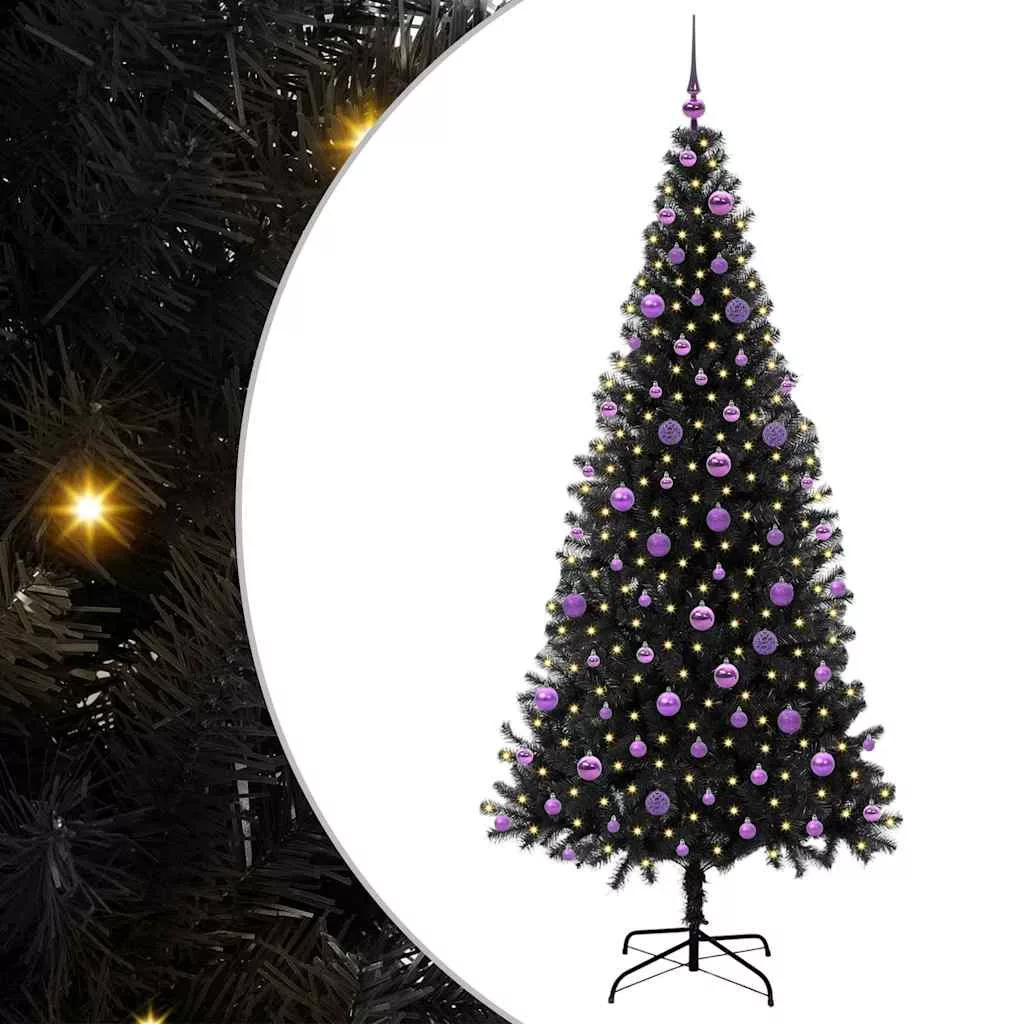 vidaXL Karácsonyfa 300 LED-del állvánnyal Fekete 210 cm PVC