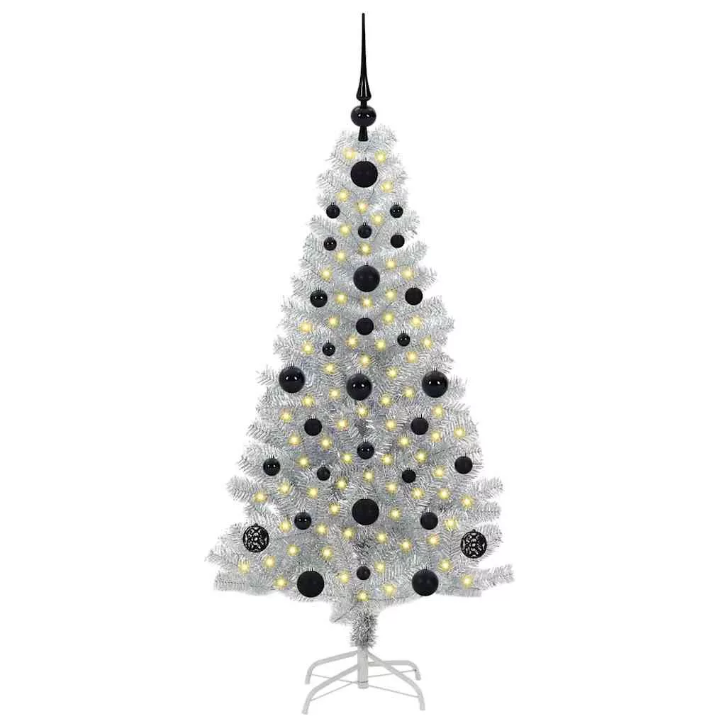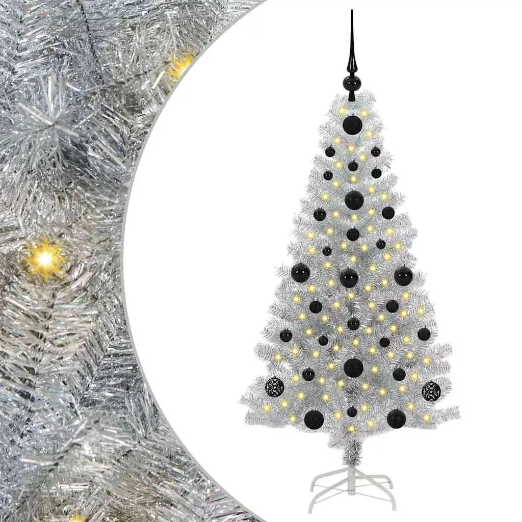 vidaXL Karácsonyfa 150 LED-del állvánnyal Ezüst 120 cm PET