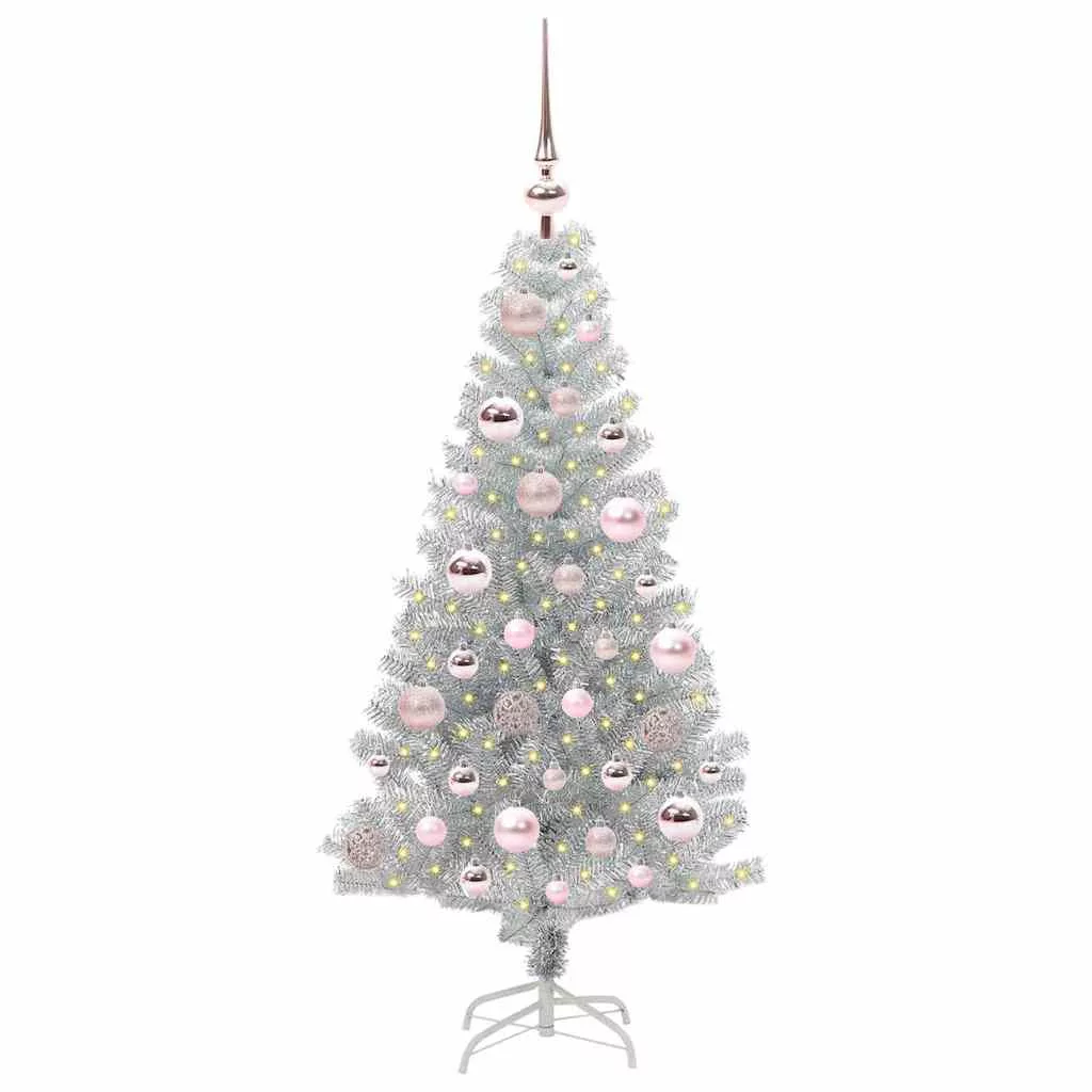 vidaXL Karácsonyfa 150 LED-del állvánnyal Ezüst 120 cm PET