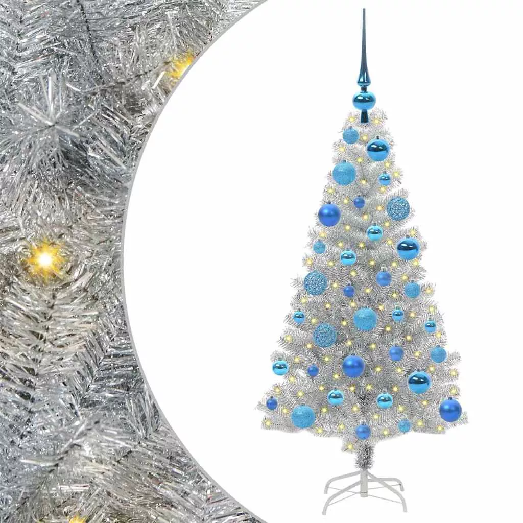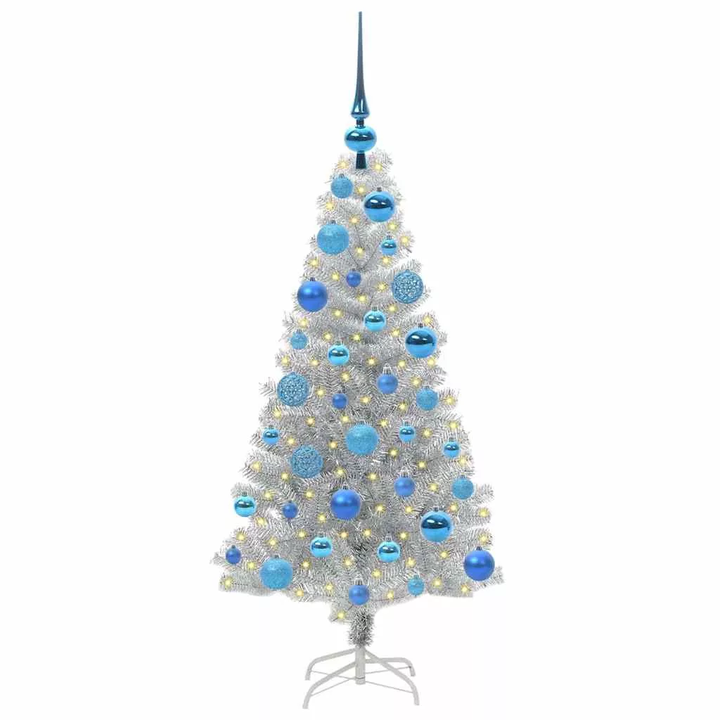 vidaXL Karácsonyfa 150 LED-del állvánnyal Ezüst 120 cm PET