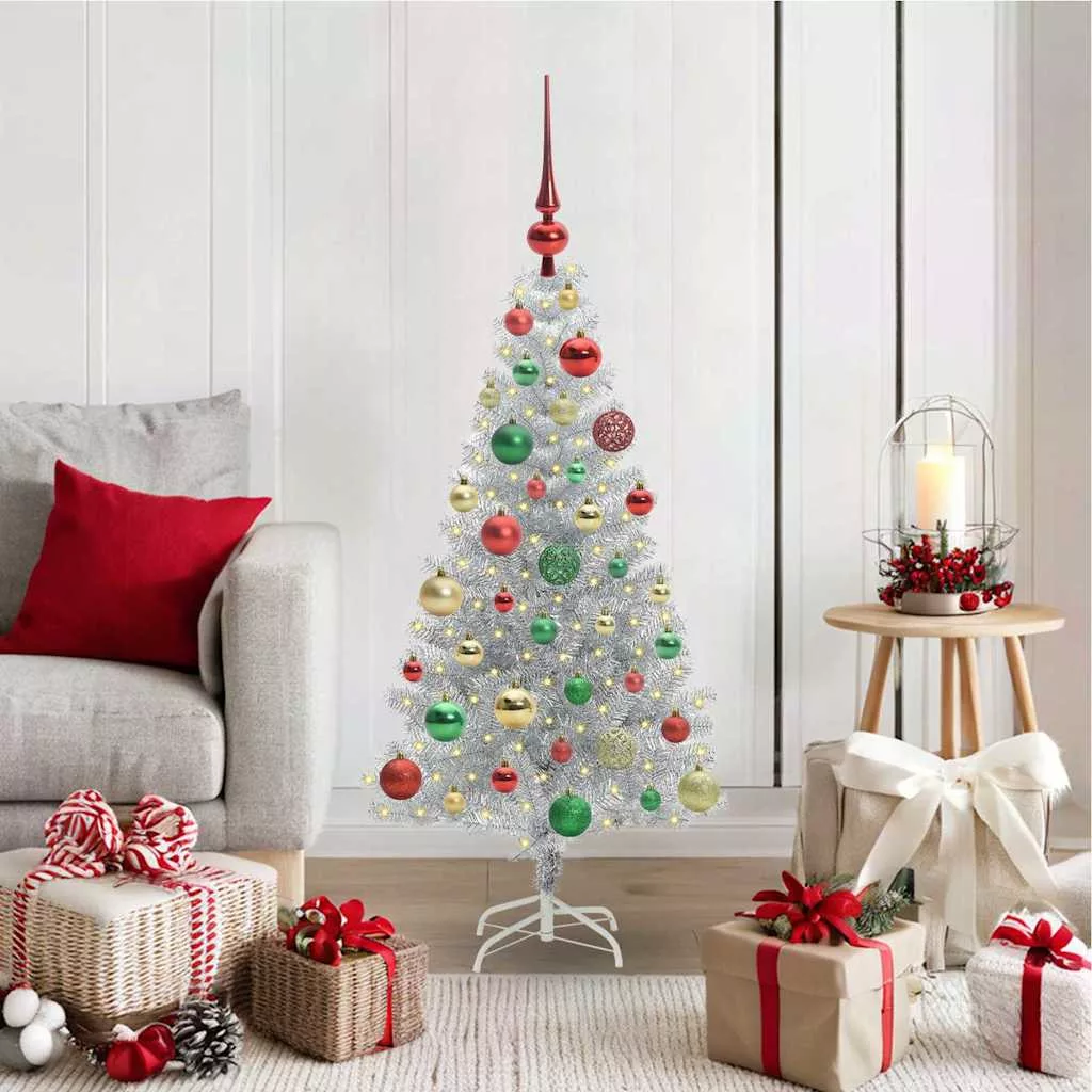 vidaXL Karácsonyfa 150 LED-del állvánnyal Ezüst 120 cm PET