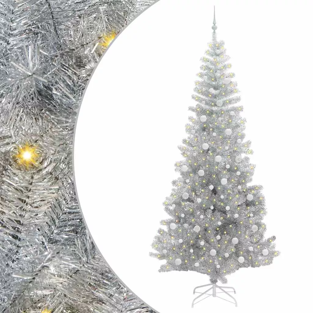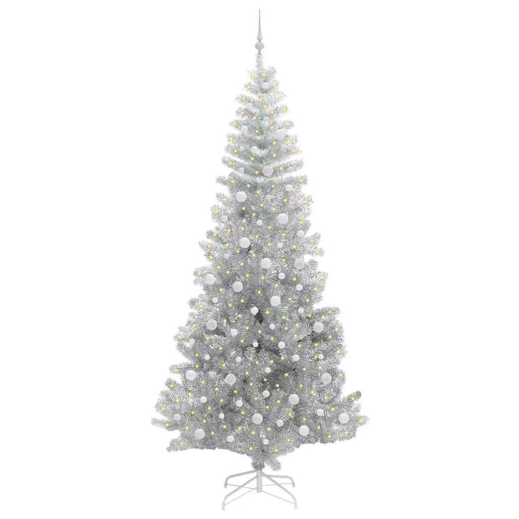 vidaXL Karácsonyfa 300 LED-del állvánnyal Ezüst 240 cm PET