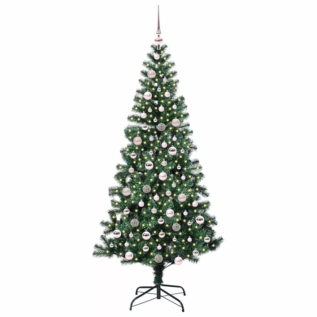 vidaXL Mesterséges, előre világított karácsonyi fa Zöld 210 cm