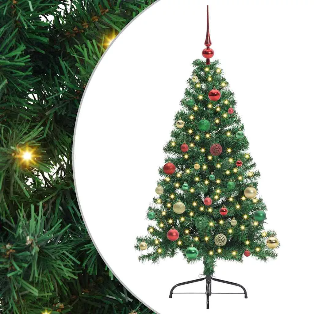 vidaXL Mesterséges, előre világított karácsonyi fa Zöld 150 cm PVC