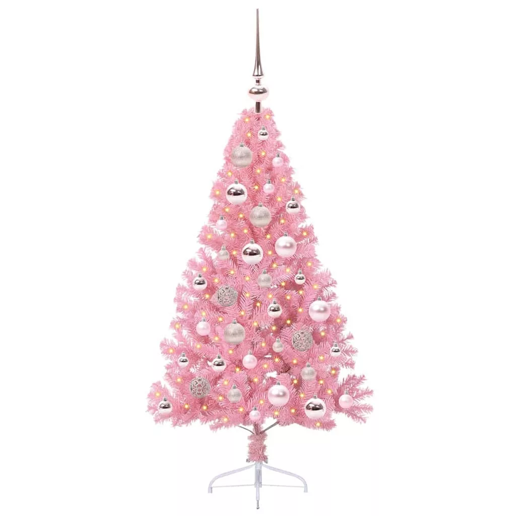 vidaXL Mesterséges, előre világított karácsonyi fa Rózsaszín 120 cm