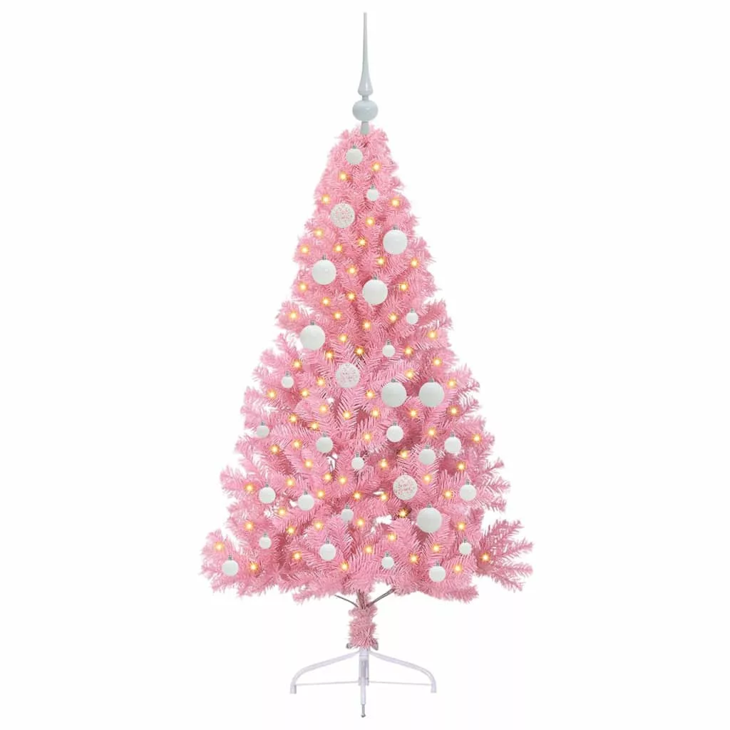 vidaXL Mesterséges, előre világított karácsonyi fa Rózsaszín 120 cm