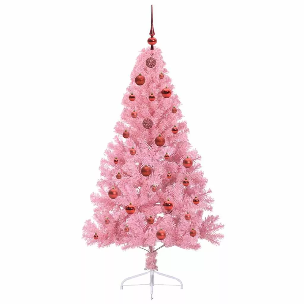 vidaXL Mesterséges, előre világított karácsonyi fa Rózsaszín 150 cm