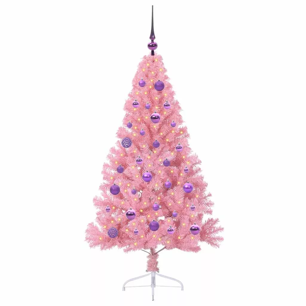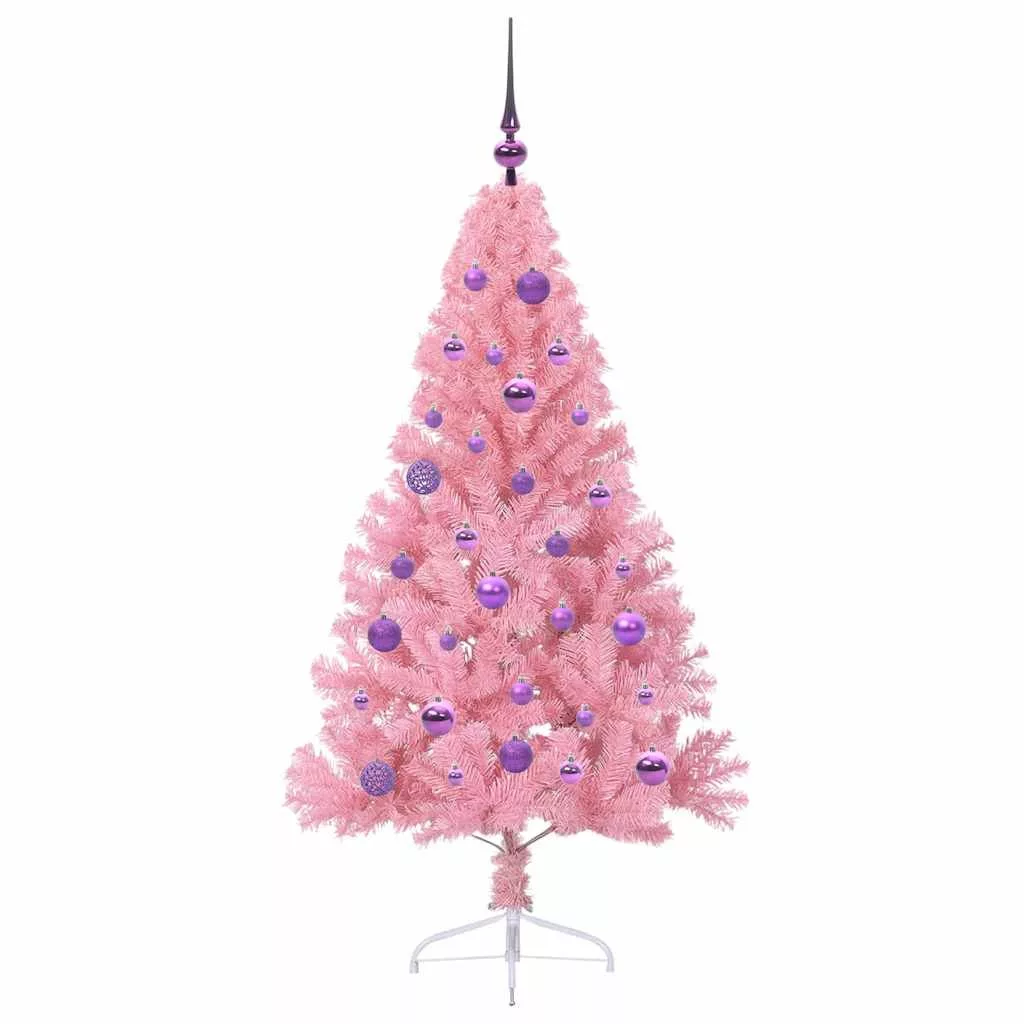 vidaXL Mesterséges, előre világított karácsonyi fa Rózsaszín 150 cm