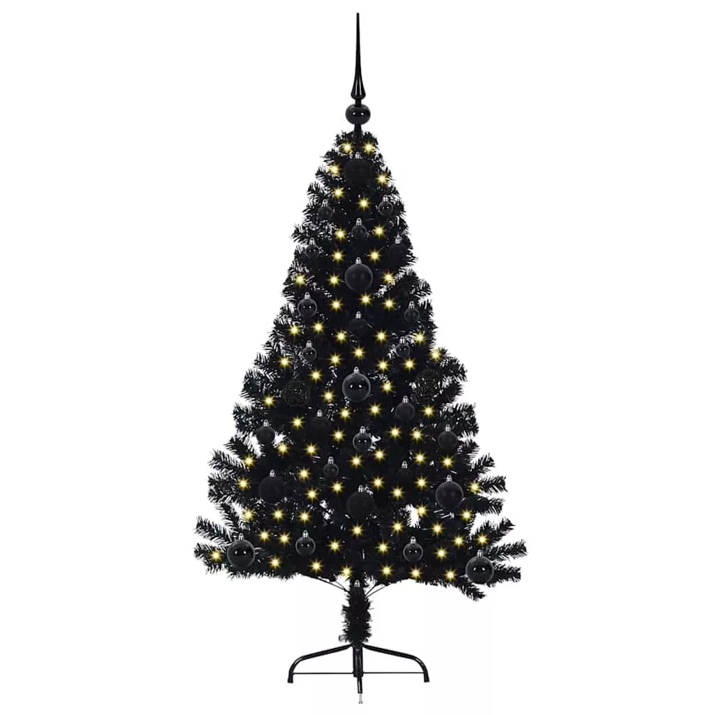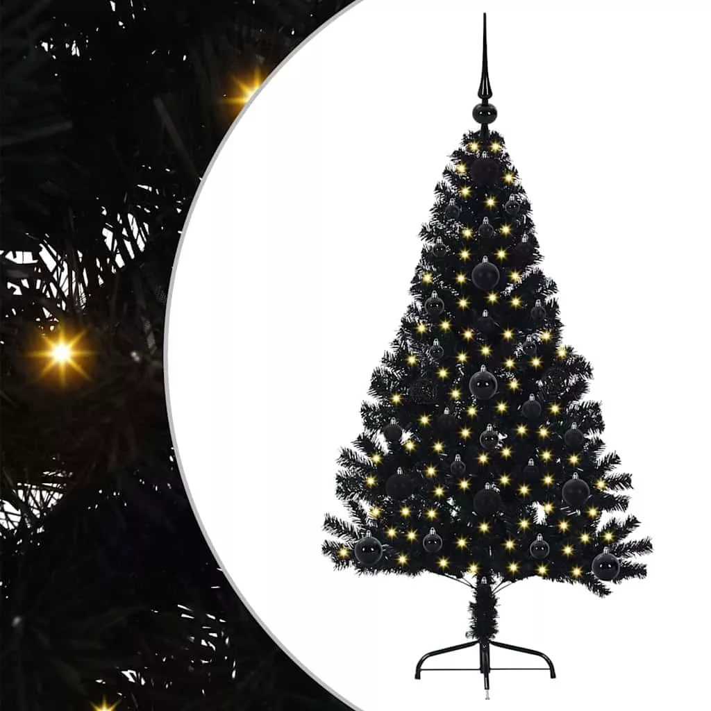 vidaXL Mesterséges, előre világított karácsonyi fa Fekete 120 cm PVC
