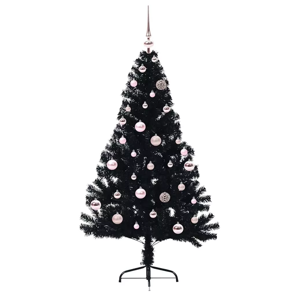 vidaXL Mesterséges, előre világított karácsonyi fa Fekete 150 cm PVC