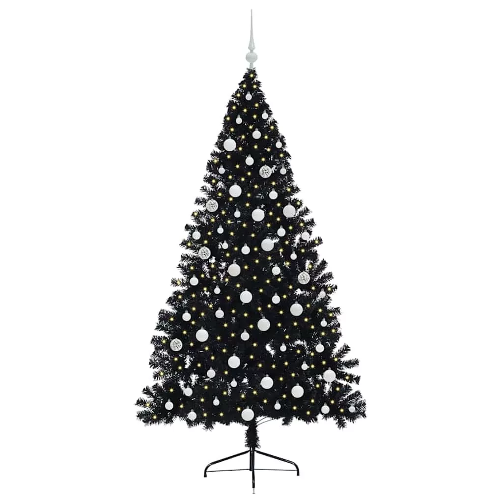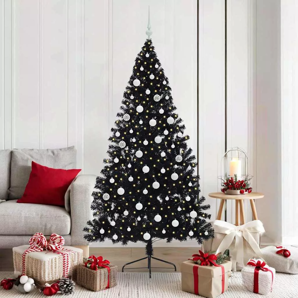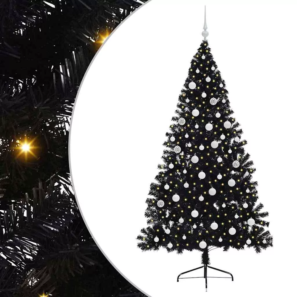 vidaXL Mesterséges, előre világított karácsonyi fa Fekete 180 cm PVC