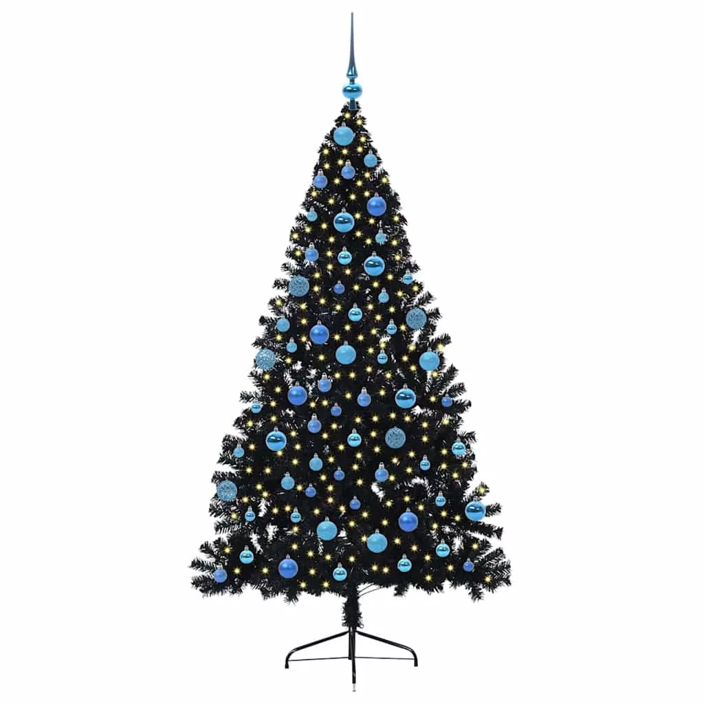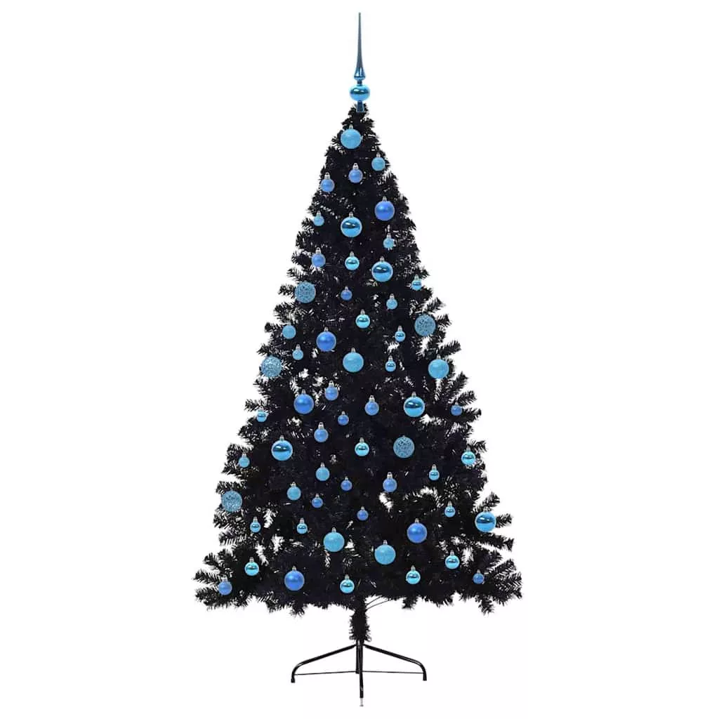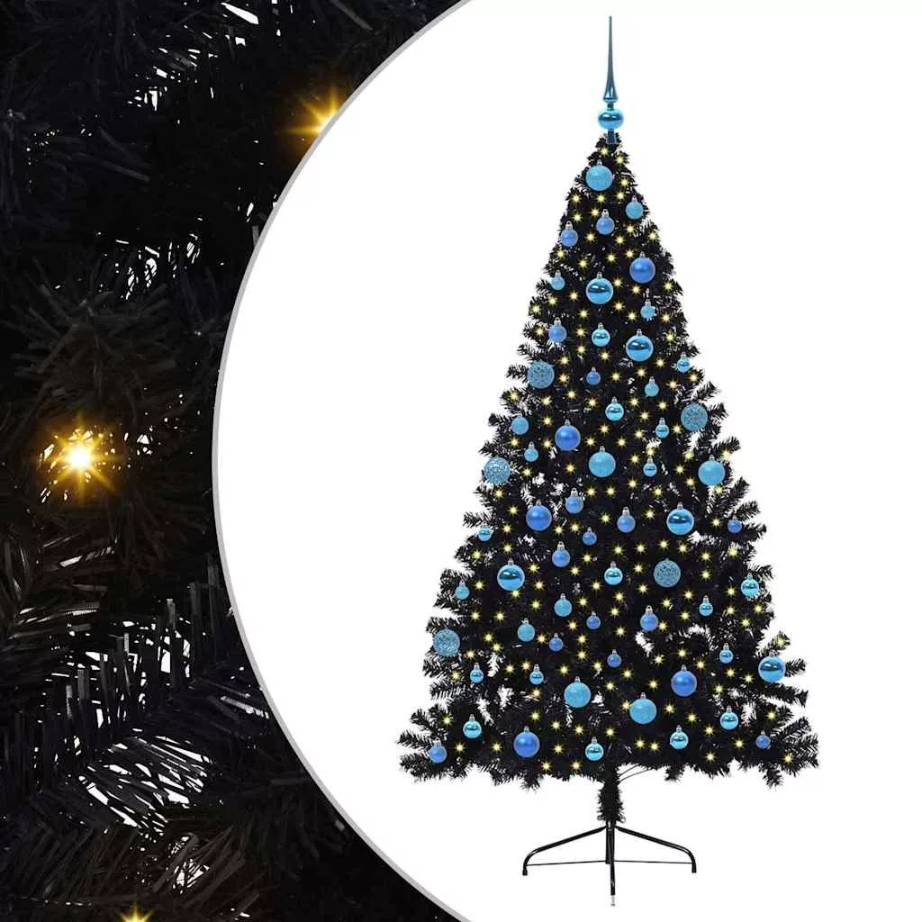 vidaXL Mesterséges, előre világított karácsonyi fa Fekete 180 cm PVC