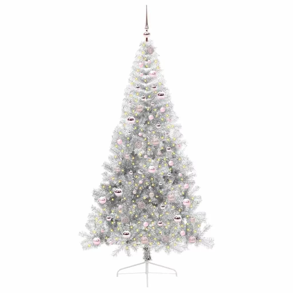vidaXL Mesterséges, előre világított karácsonyi fa Ezüst 210 cm PET