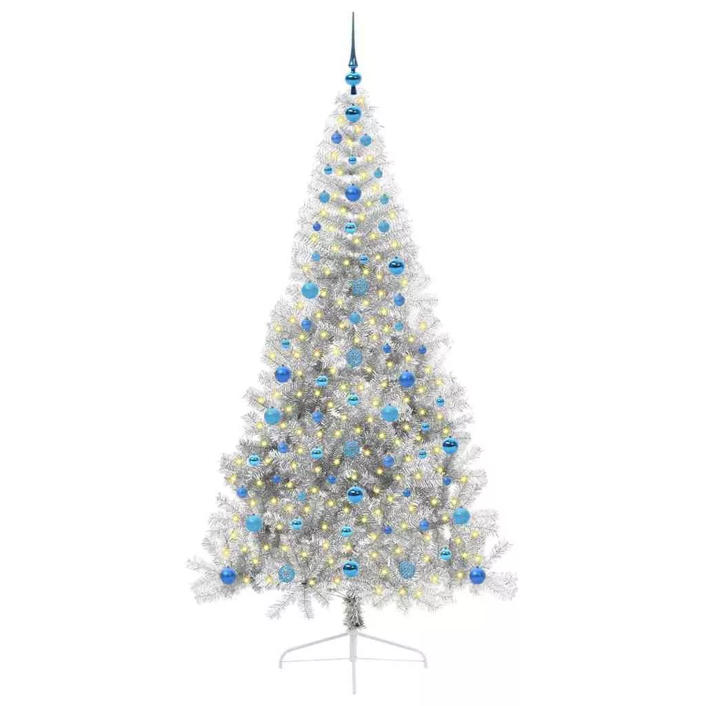 vidaXL Mesterséges, előre világított karácsonyi fa Ezüst 210 cm PET