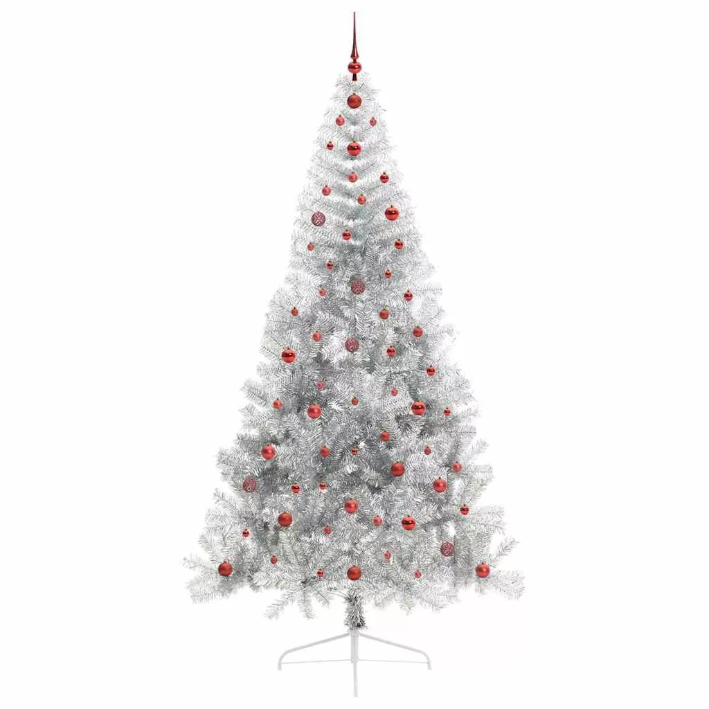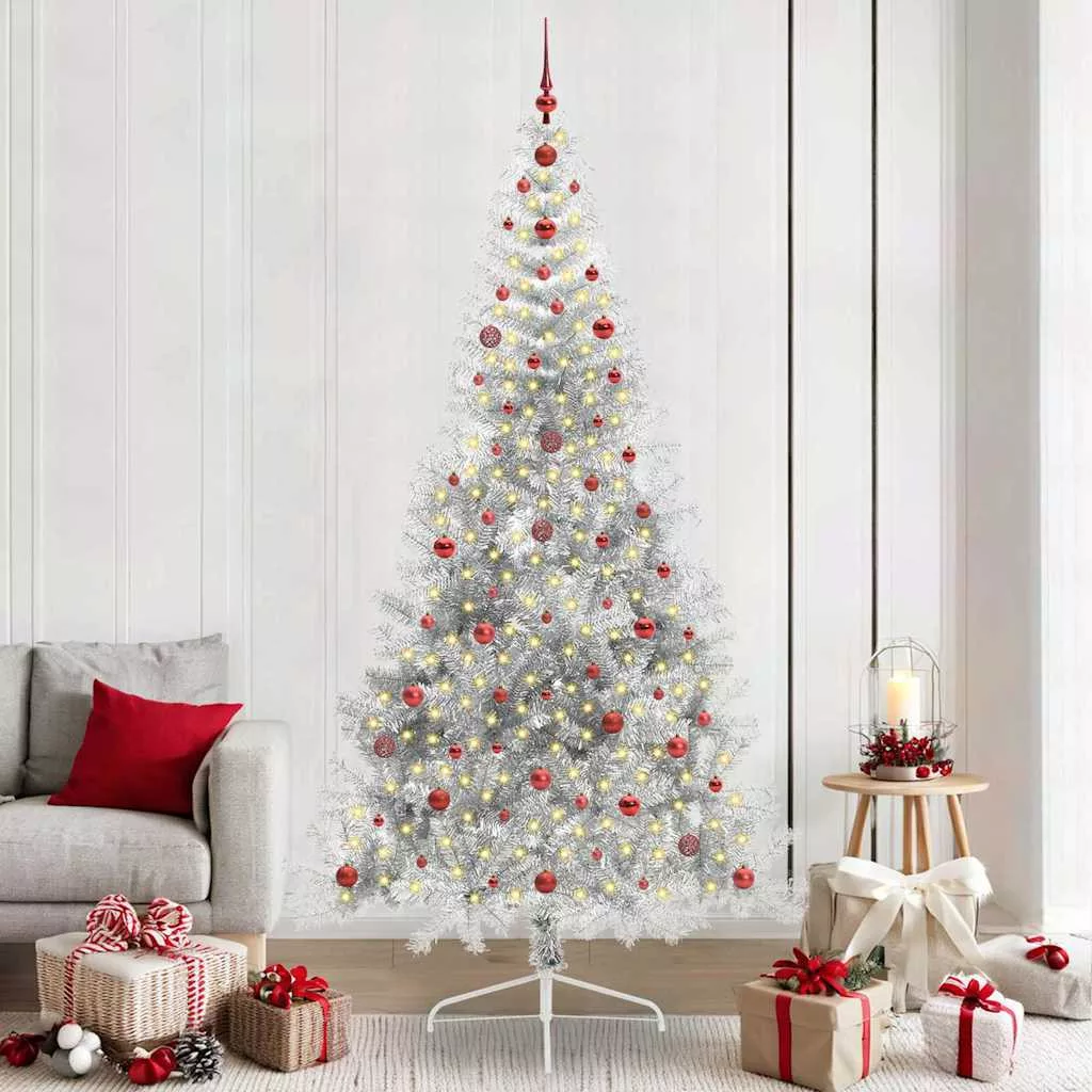vidaXL Mesterséges, előre világított karácsonyi fa Ezüst 240 cm PET