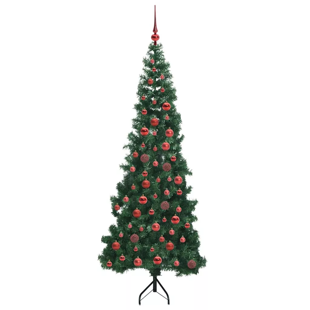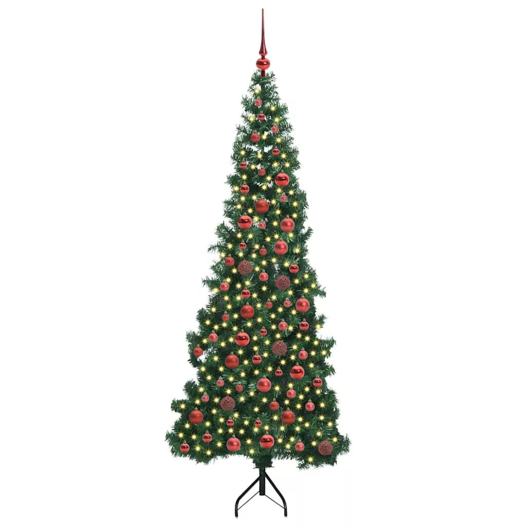 vidaXL Sarok Műkarácsonyfa 300 LED-del Zöld 180 cm PVC és fém