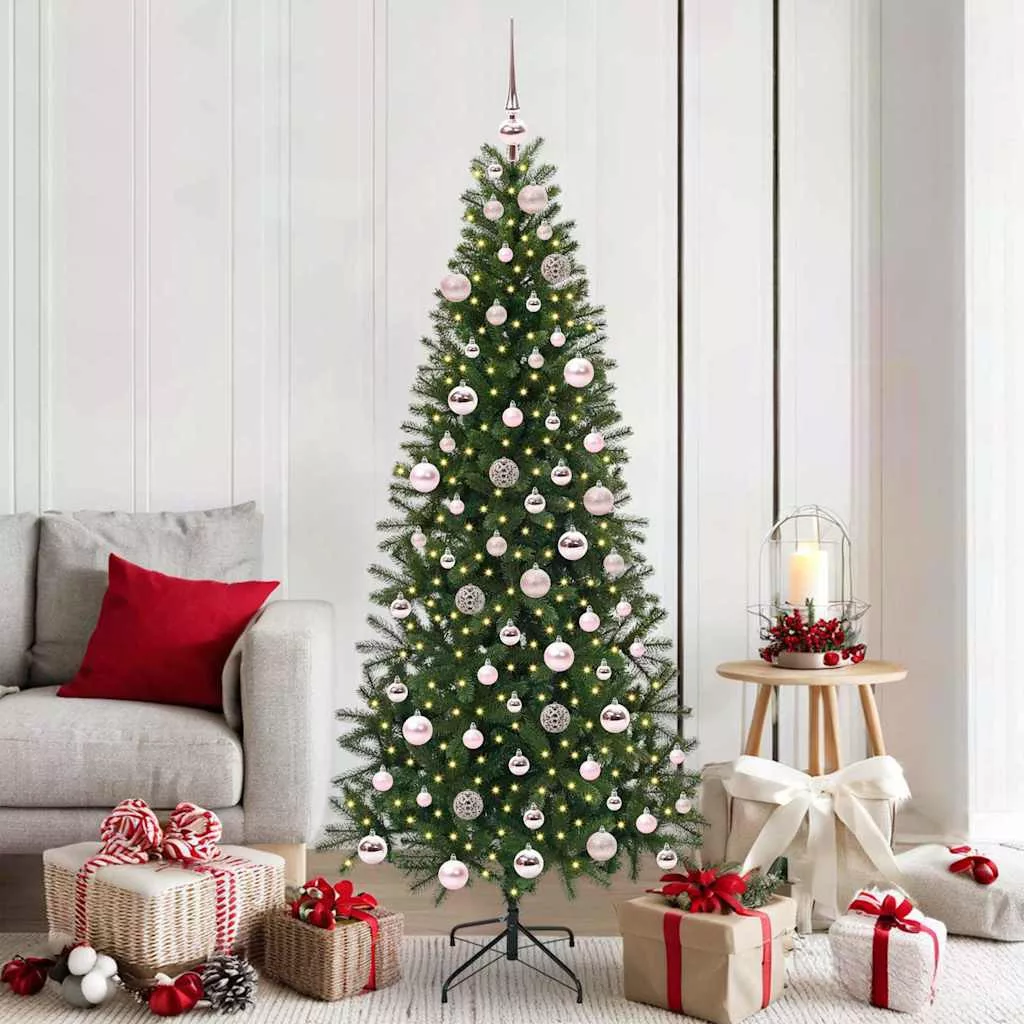 - PVC és PE anyagok: Ez a fa prémium PE és PVC anyagból készült, amivel tartós és autentikus megjelenést kapott. Ezek az anyagok tűzállóságukról is ismertek, így biztonságosabbá teszik az ünnepi díszítést. A fa élénk zöld színben pompázik anélkül, hogy megfakulna, így az ünnepi kiállítás egész szezonban tart. Ezen anyagok kombinációja valóságos hangulatot ad az ünnepi dekorációnak, megbízható és vonzó megoldást kínálva az éves ünneplésekhez.