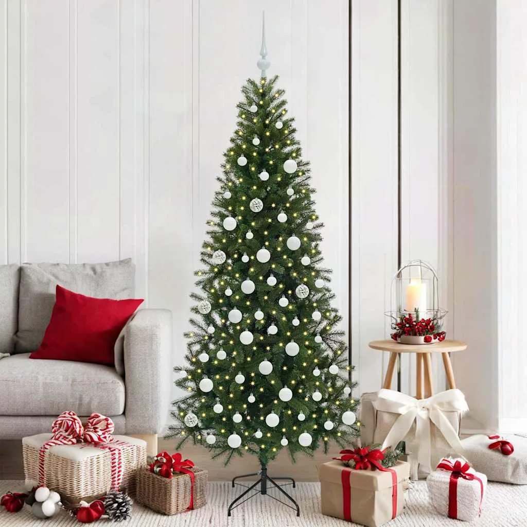 - PVC és PE anyagok: Ez a fa prémium PE és PVC anyagból készült, amivel tartós és autentikus megjelenést kapott. Ezek az anyagok tűzállóságukról is ismertek, így biztonságosabbá teszik az ünnepi díszítést. A fa élénk zöld színben pompázik anélkül, hogy megfakulna, így az ünnepi kiállítás egész szezonban tart. Ezen anyagok kombinációja valóságos hangulatot ad az ünnepi dekorációnak, megbízható és vonzó megoldást kínálva az éves ünneplésekhez.
