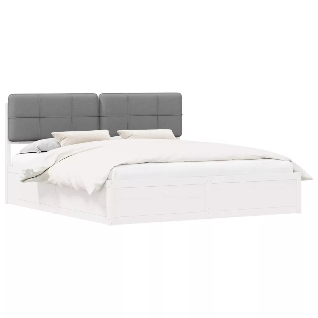 Ez a kárpitozott fejtámlás fa ágykeret modern stílust ad a hálószobához. Téglalap formája és minimalista kidolgozása könnyed eleganciát teremt, miközben garantálja a kényelmet és a praktikát.