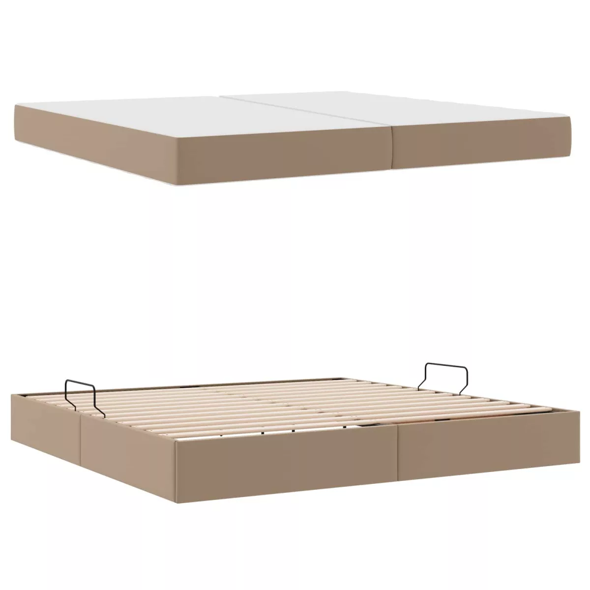 Ez a modern tárolós ágy letisztult fekete fém kerettel készült, hogy feldobja a hálószobák hangulatát. Zökkenőmentes textúrája és műbőr borítása elegáns megjelenést biztosít, tökéletes azoknak, akik a funkciót és a formát egyaránt értékelik. Nagyon jól kihasználja a teret, mivel össze van építve tárolóval és matraccal, így ideális megoldás a többfunkciós bútordarabokat kereső helyiségekhez.