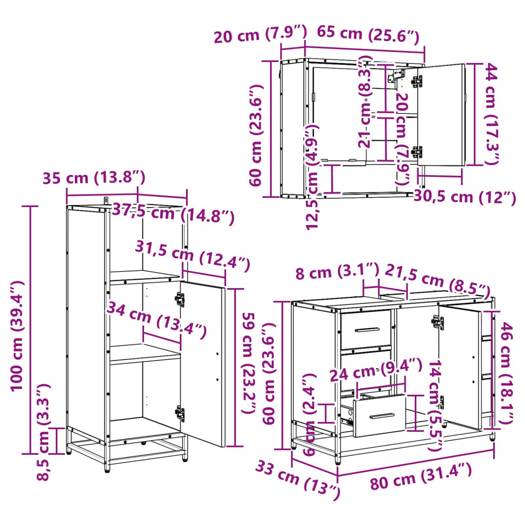 - Átfogó elemek A készlet tartalmaz egy tükörszekrényt, mosdószekrényt és egy plusz tárolószekrényt. Minden úgy van tervezve, hogy maximalizálja a helykihasználást, így könnyedén rendben tarthatod fürdőszobádat.