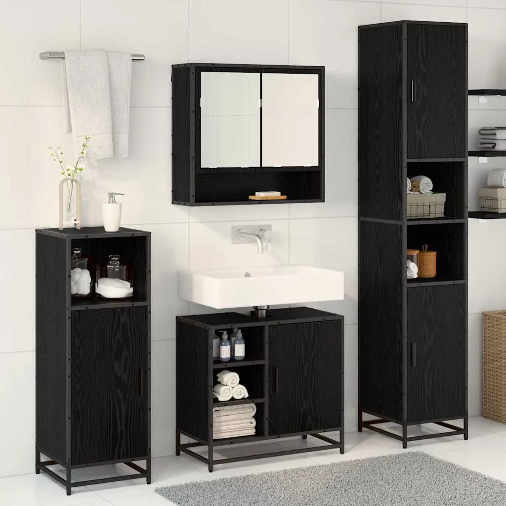 - Változatos tárolási megoldások: Manyfajta tárolási lehetőséget kínál, mint deszkás polcok, amik rendezett helyet biztosítanak, lehetővé téve a különböző fürdőszobai igények kielégítését.