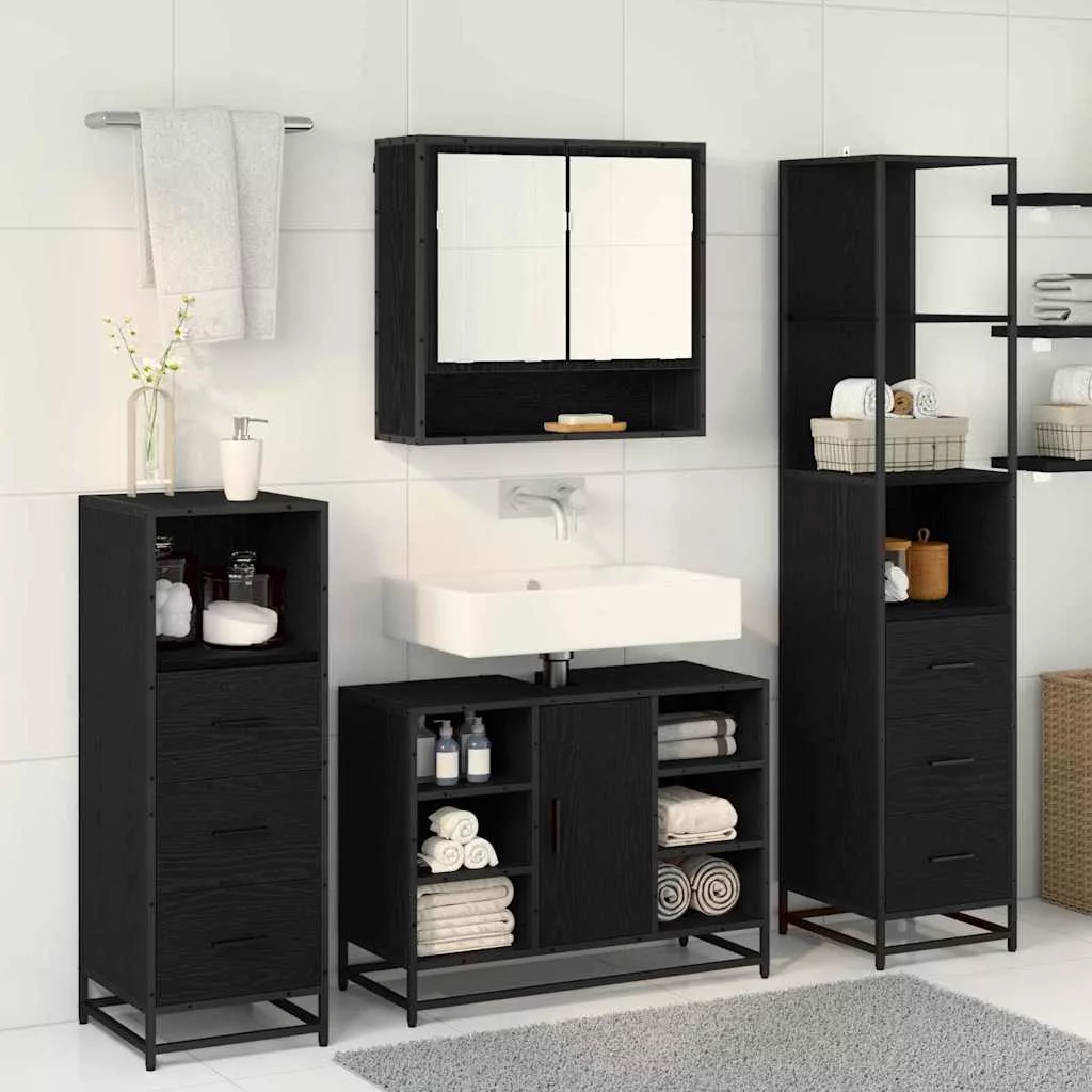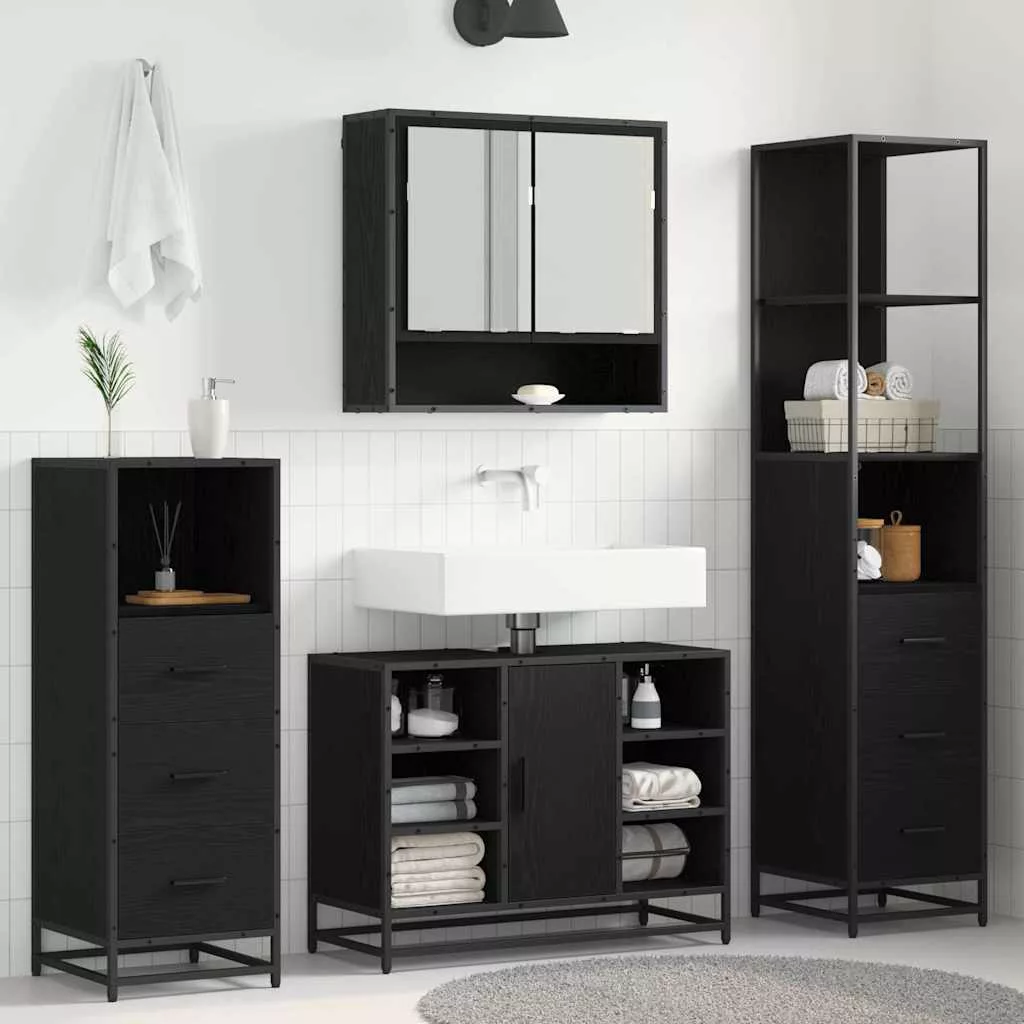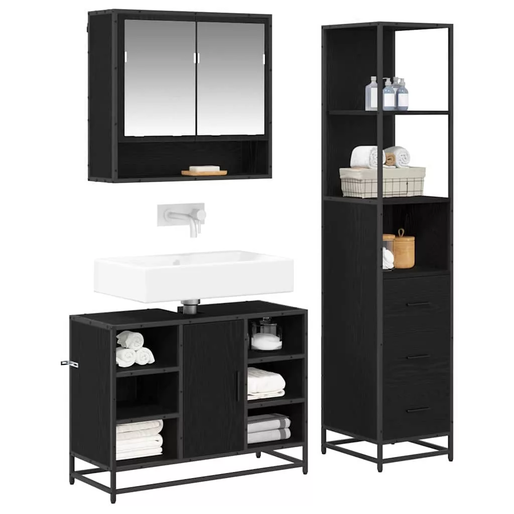 - Full szett: A csomag tartalmaz tükörszekrényt, mosdószekrényt és egy magas fürdőszobai szekrényt, mindegyik külön tárolási megoldással. A tükörszekrény megkönnyíti a kozmetikumok elérését, a mosdószekrény praktikus tárolást biztosít a mosdó alatt, míg a magas szekrény bőséges polclási lehetőséget nyújt.