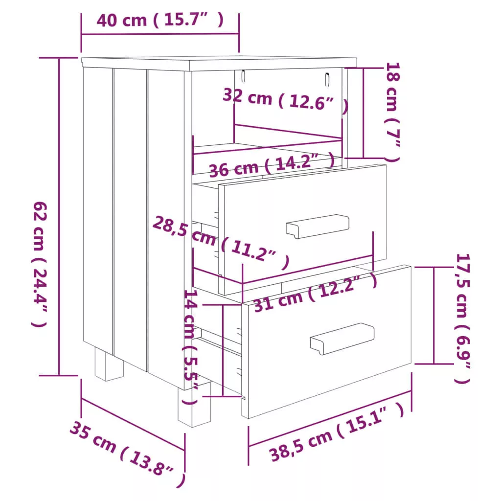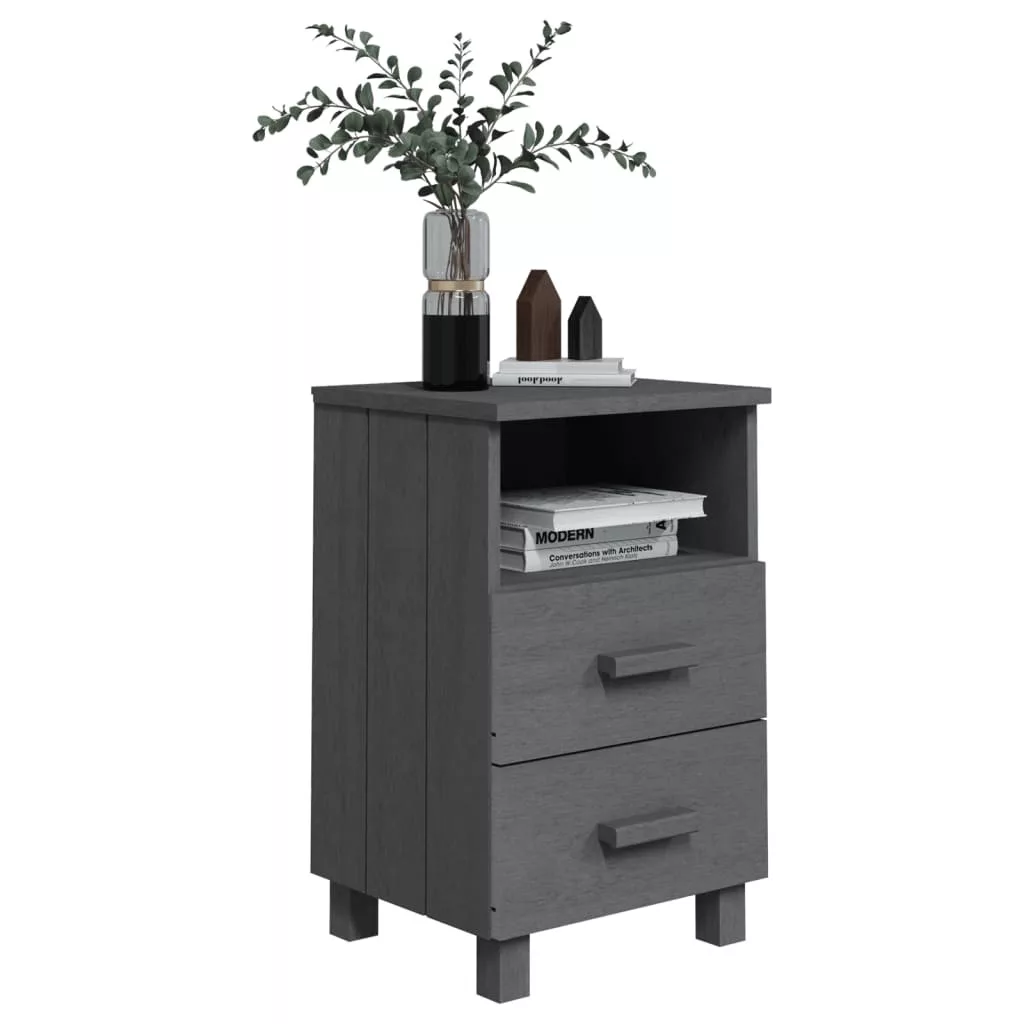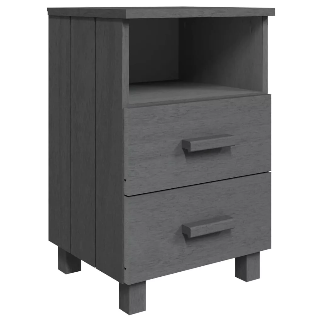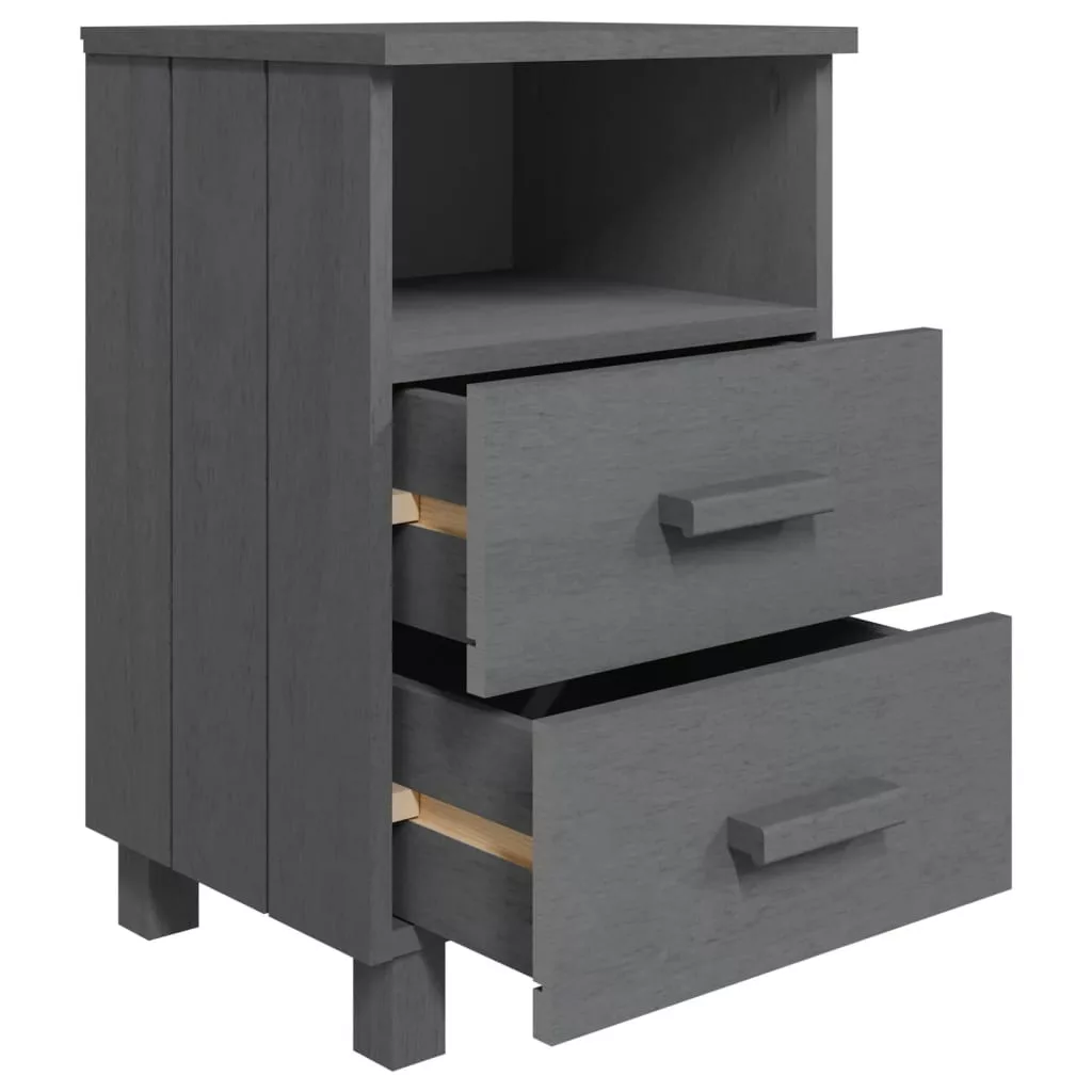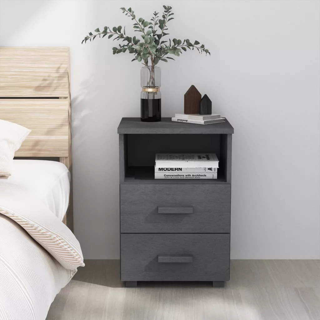 Ez az ágy melletti asztal tömör fenyőfából készült, így erős és stabil. Az éjjeliszekrény két könnyen kihúzható fiókkal é egy nyitott rekesszel rendelkezik, melyek bőséges helyet kínálnak magazinok, könyvek, távirányítók és egyéb kisebb kellékek kézközelben történő rendezett tárolásához. Emellett az erős asztallap ideális dísztárgyak elhelyezésére.