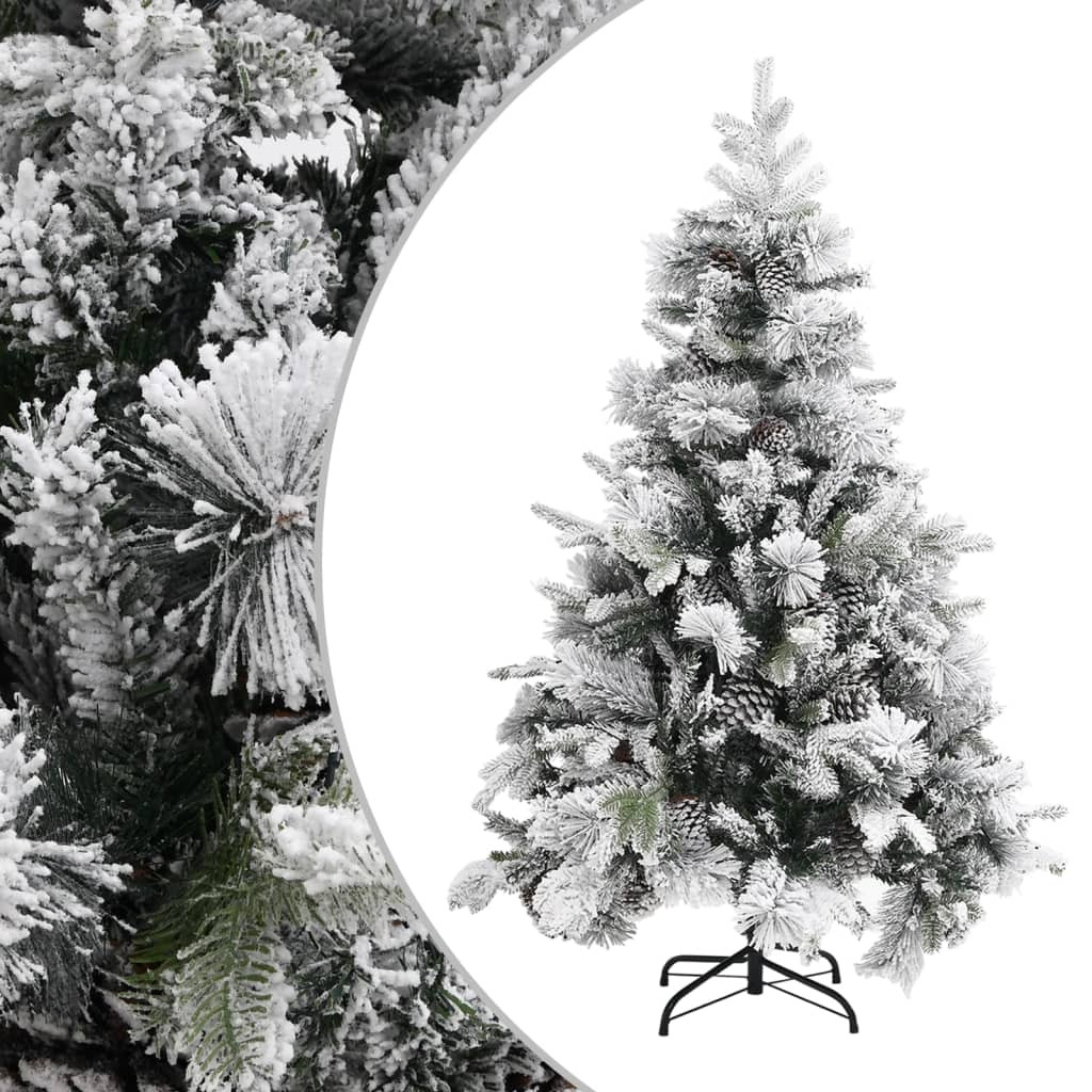Ez a gyönyörű karácsonyfa PVC-ből és PE-ből készült ágakkal rendelkezik. Az ágak egy csuklópántrendszerrel vannak a főoszlophoz erősítve. A csuklópántoknak köszönhetően az ágak automatikusan megtalálják a megfelelő pozíciót. A tobozokkal és pelyhes fehér hóval díszített ágak eleganciát kölcsönöznek a karácsonyfa megjelenésének. A mellékelt acéltalpazat optimális stabilitást nyújt a fának.