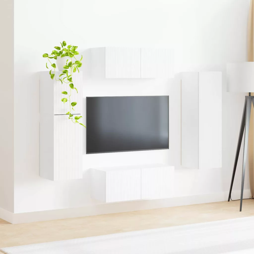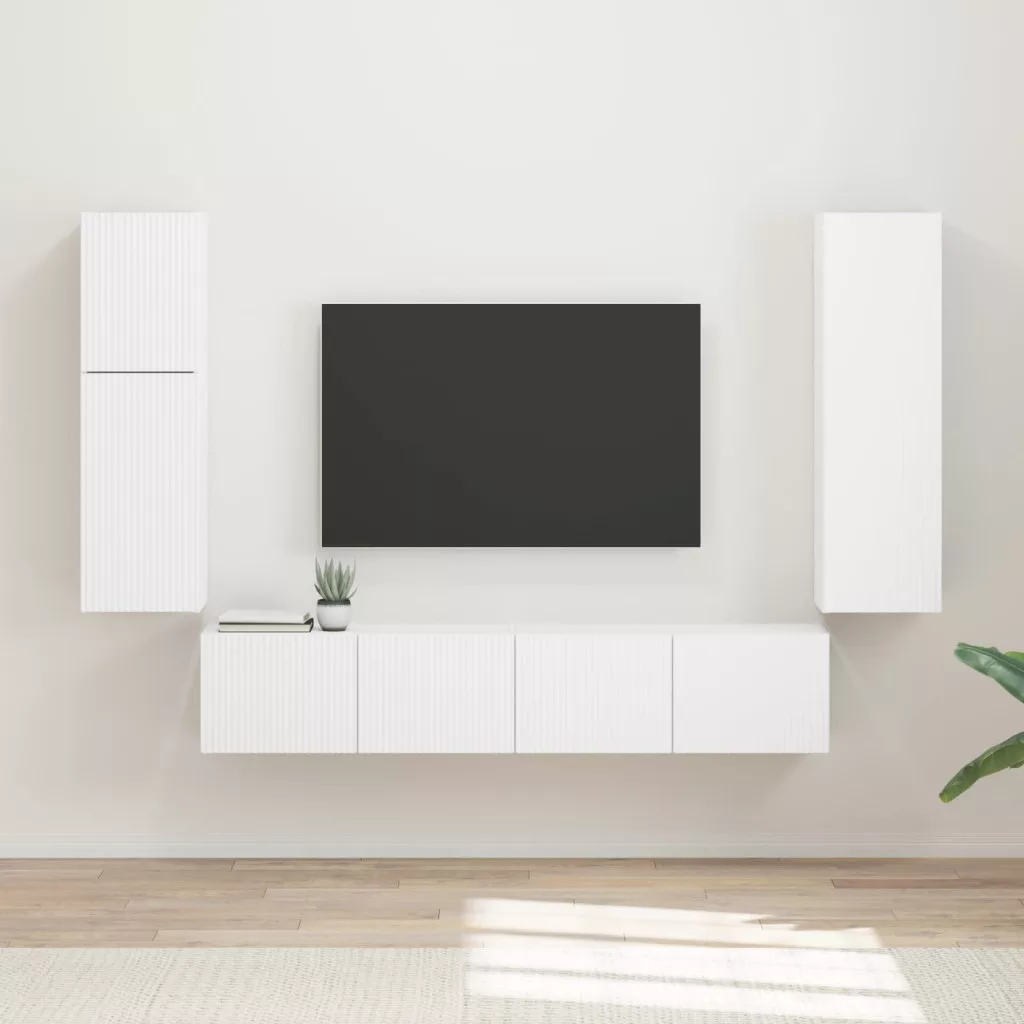 Ez a modern tévé szekrény szett minden nappali pazar kiegészítője, hiszen stílusos és letisztult vonalai vannak. A funkcionalitás és esztétikai megjelenés egyszerre van jelen, így a szett átalakítja a teredet egy rendezett és kellemes környezetté. Tömör fából készült, ami hosszú élettartamot biztosít, de ragyogó dizájnjával nem lesz nehéz megőrizni a frissességét. A szett különböző méretű falra szerelhető szekrényekből áll, ami lehetővé teszi, hogy maximálisan kihasználhasd a nappalidat és fenntartsd a rendet. Akik a stílusra és praktikusságra vágynak, azoknak ez a szett beleillik a modern belsőkbe.