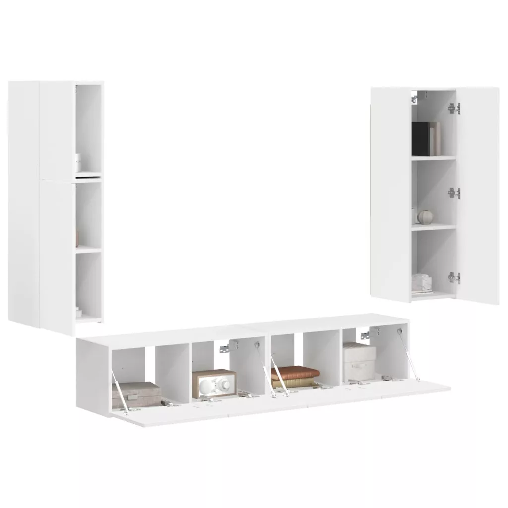 - Többféle tárolási lehetőség: A szett különböző méretű faliszekrényekből áll, például 30 x 31 x 100 cm, 78,5 x 31 x 30 cm, 30 x 31 x 60 cm és 30 x 31 x 40 cm, mind bőséges tárolóhellyel, amit a média felszerelés, könyvek vagy dekoráció egészíthet ki, ezáltal segít megőrizni a rendet.