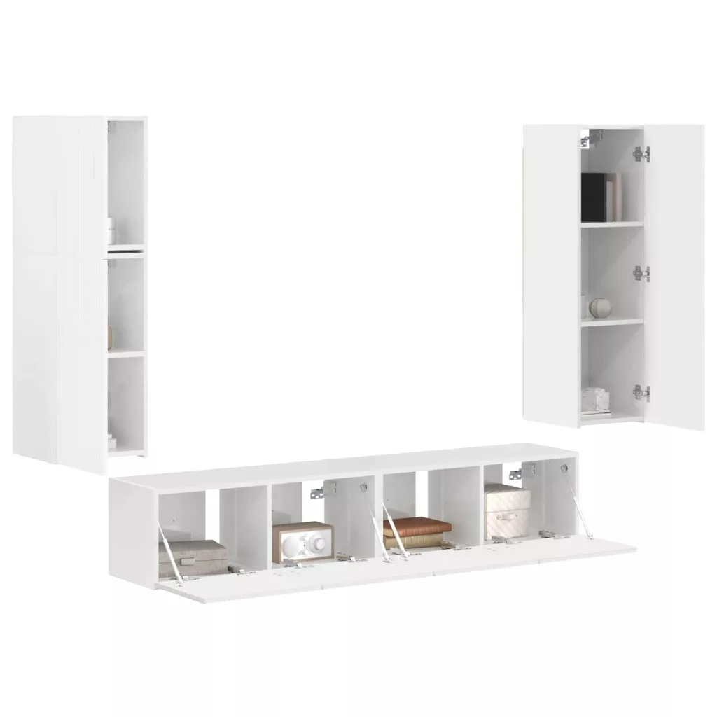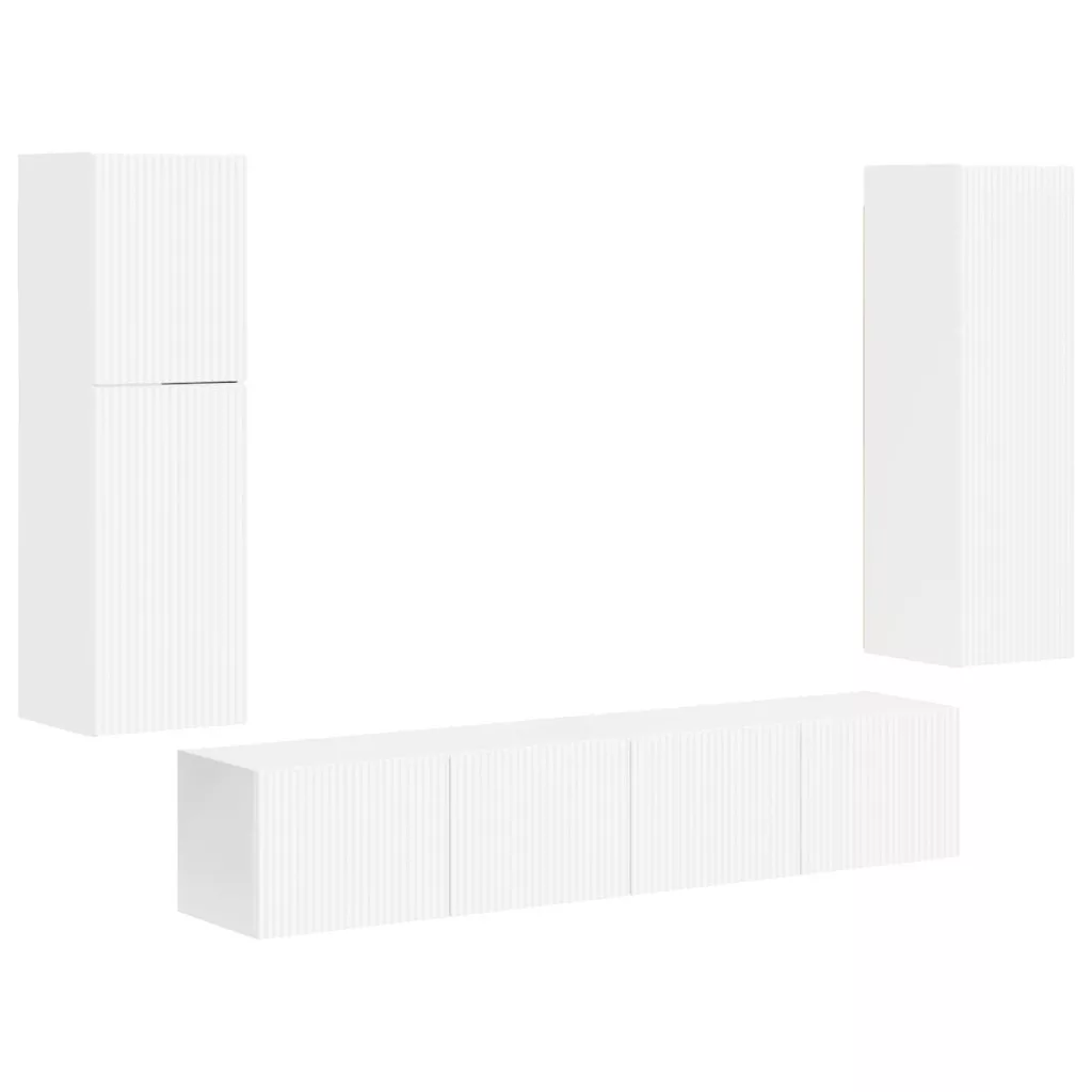 - Többféle tárolási lehetőség: A szett különböző méretű faliszekrényekből áll, például 30 x 31 x 100 cm, 78,5 x 31 x 30 cm, 30 x 31 x 60 cm és 30 x 31 x 40 cm, mind bőséges tárolóhellyel, amit a média felszerelés, könyvek vagy dekoráció egészíthet ki, ezáltal segít megőrizni a rendet.