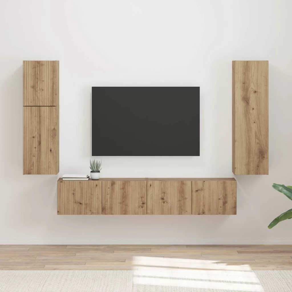 Ez a modern tévé szekrény szett minden nappali pazar kiegészítője, hiszen stílusos és letisztult vonalai vannak. A funkcionalitás és esztétikai megjelenés egyszerre van jelen, így a szett átalakítja a teredet egy rendezett és kellemes környezetté. Tömör fából készült, ami hosszú élettartamot biztosít, de ragyogó dizájnjával nem lesz nehéz megőrizni a frissességét. A szett különböző méretű falra szerelhető szekrényekből áll, ami lehetővé teszi, hogy maximálisan kihasználhasd a nappalidat és fenntartsd a rendet. Akik a stílusra és praktikusságra vágynak, azoknak ez a szett beleillik a modern belsőkbe.