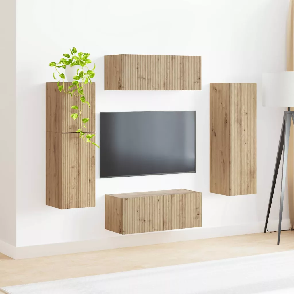 - Többféle tárolási lehetőség: A szett különböző méretű faliszekrényekből áll, például 30 x 31 x 100 cm, 78,5 x 31 x 30 cm, 30 x 31 x 60 cm és 30 x 31 x 40 cm, mind bőséges tárolóhellyel, amit a média felszerelés, könyvek vagy dekoráció egészíthet ki, ezáltal segít megőrizni a rendet.