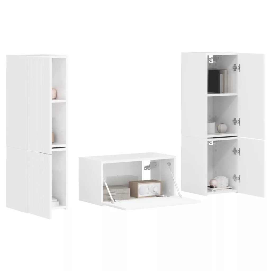 - Multi-szintes tárolás: Kompartmentumokkal, fiókokkal és polcokkal ez a szett bőséges tárolási lehetőségeket kínál elektronikai eszközök, könyvek vagy dekorációs elemek számára. Tolóajtói rugalmasságot biztosítanak a tér kezelésében, lehetővé téve, hogy az igényeknek megfelelően állítsák be a média eszközök méretét. A zárt rekeszek diszkrét tárolást kínálnak, megőrizve a tér rendezett megjelenését.