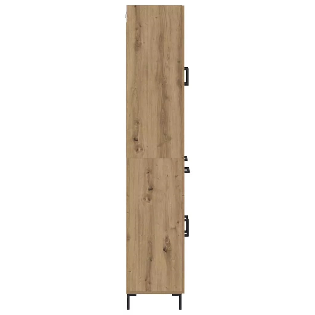- Tartós anyagok: Szerelt fából készült, ez a magas szekrény van úgy megtervezve, hogy bírja a mindennapi használatot, miközben megőrzi az elegáns kinézetét. A szerelt fa megbízható és stílusos megoldást ad, hasonlít a természetes fafornírra, de nem nehéz, így ideális azoknak, akik a szépséget és a stabilitást keresik a tárolásban.