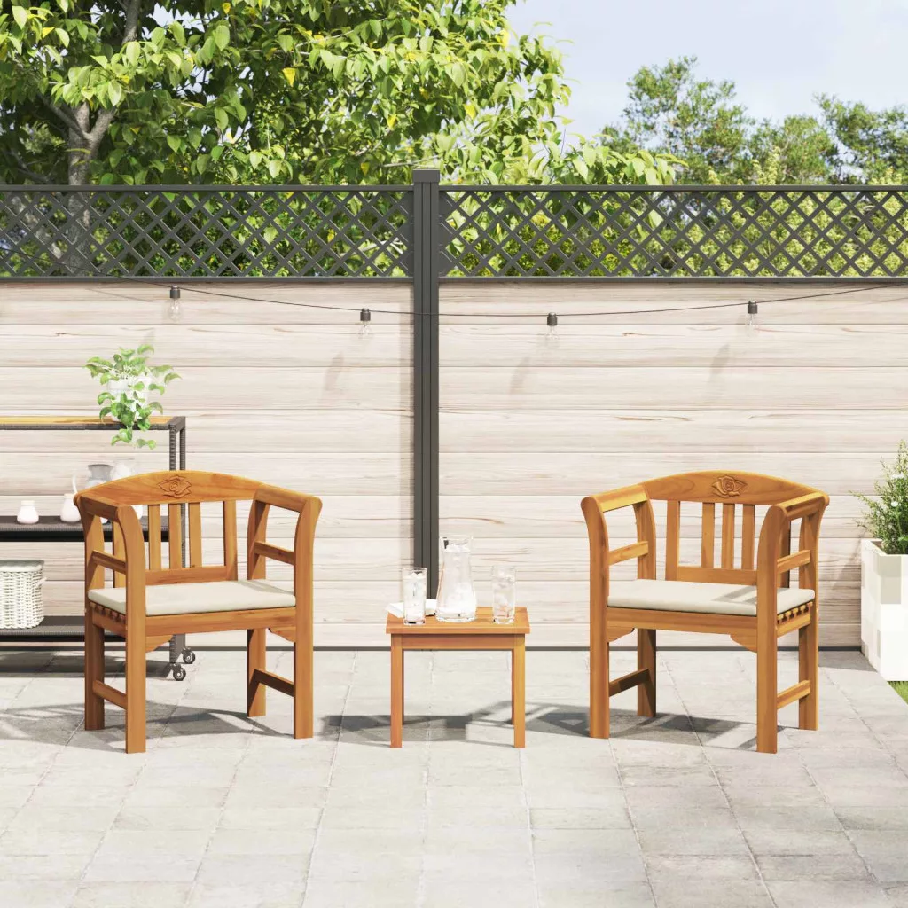 vidaXL Bútor szett párnával 3 pcs Természetes Tömör Akácfa