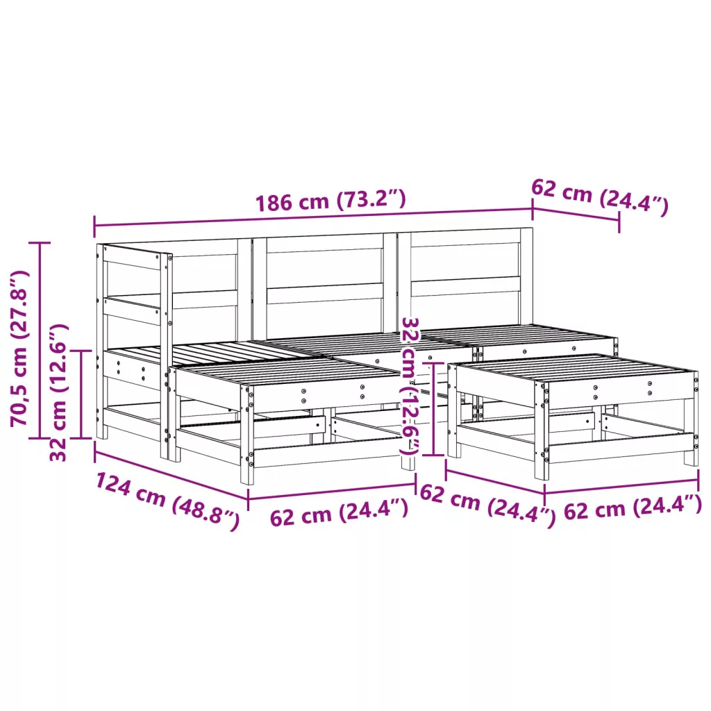 Ez a kerti loungeszett könnyedén a tér középpontjába kerül, és a kortárs dizájn mellett a praktikus funkciókat is felvonultatja. Tömör fenyőfából készült, amely kellemes természetes hatást áraszt, ideális kültéri pihenésre vagy vendégszeretetre. A letisztult vonalak és a sima felületek garantálják, hogy a bútor jól illeszkedjen bármely kültéri dekorációba. Moduláris felépítése lehetővé teszi, hogy könnyen átrendezd az elemeket, így mindig a legjobban passzoló elrendezést hozhatod létre.