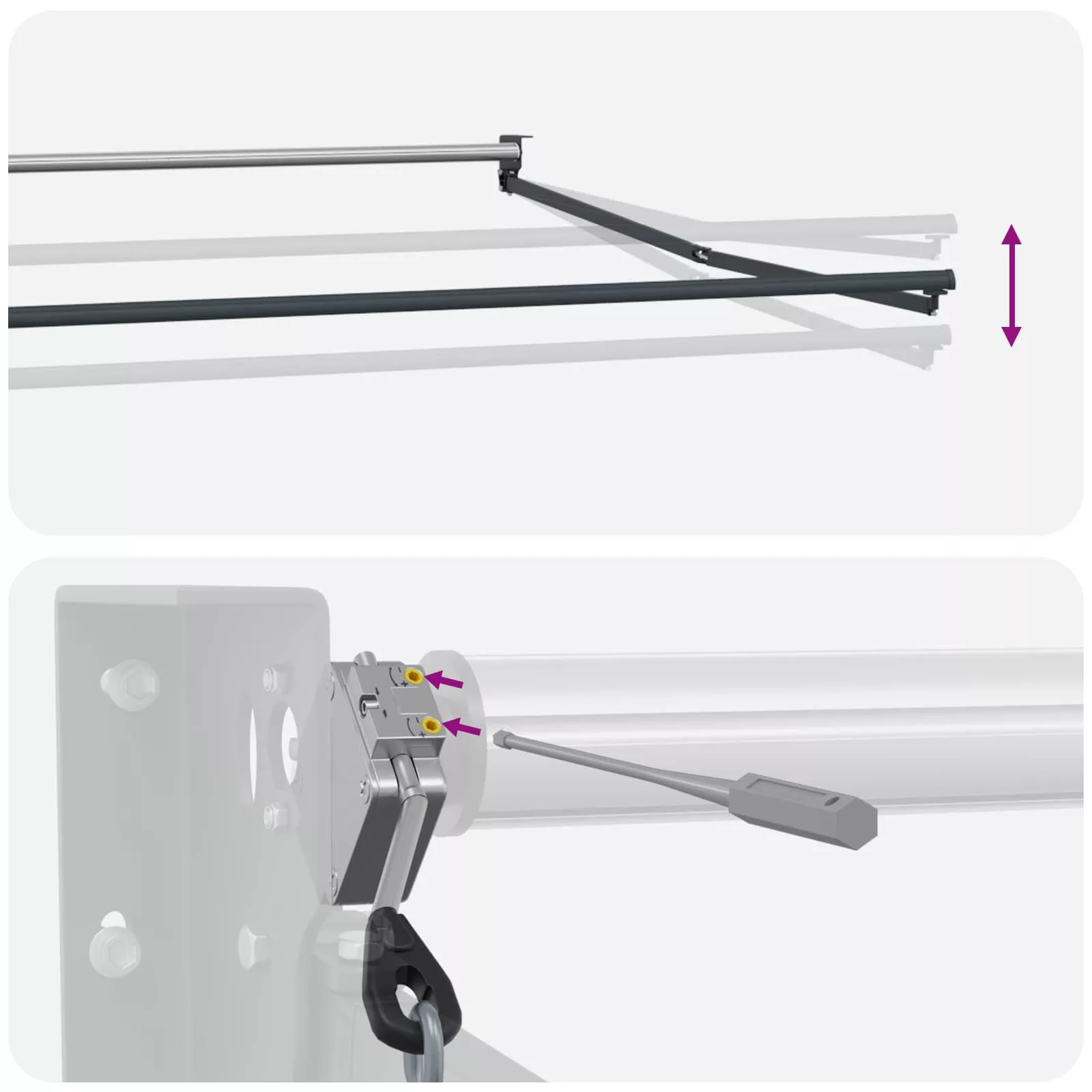 - Kétféle működési mód: Kiválóan alkalmazkodik a felhasználók igényeihez: motoros automatikus kinyitásra és behúzásra, valamint manuális karral is használható. Ez a rugalmasság széleskörű lehetőségeket ad.