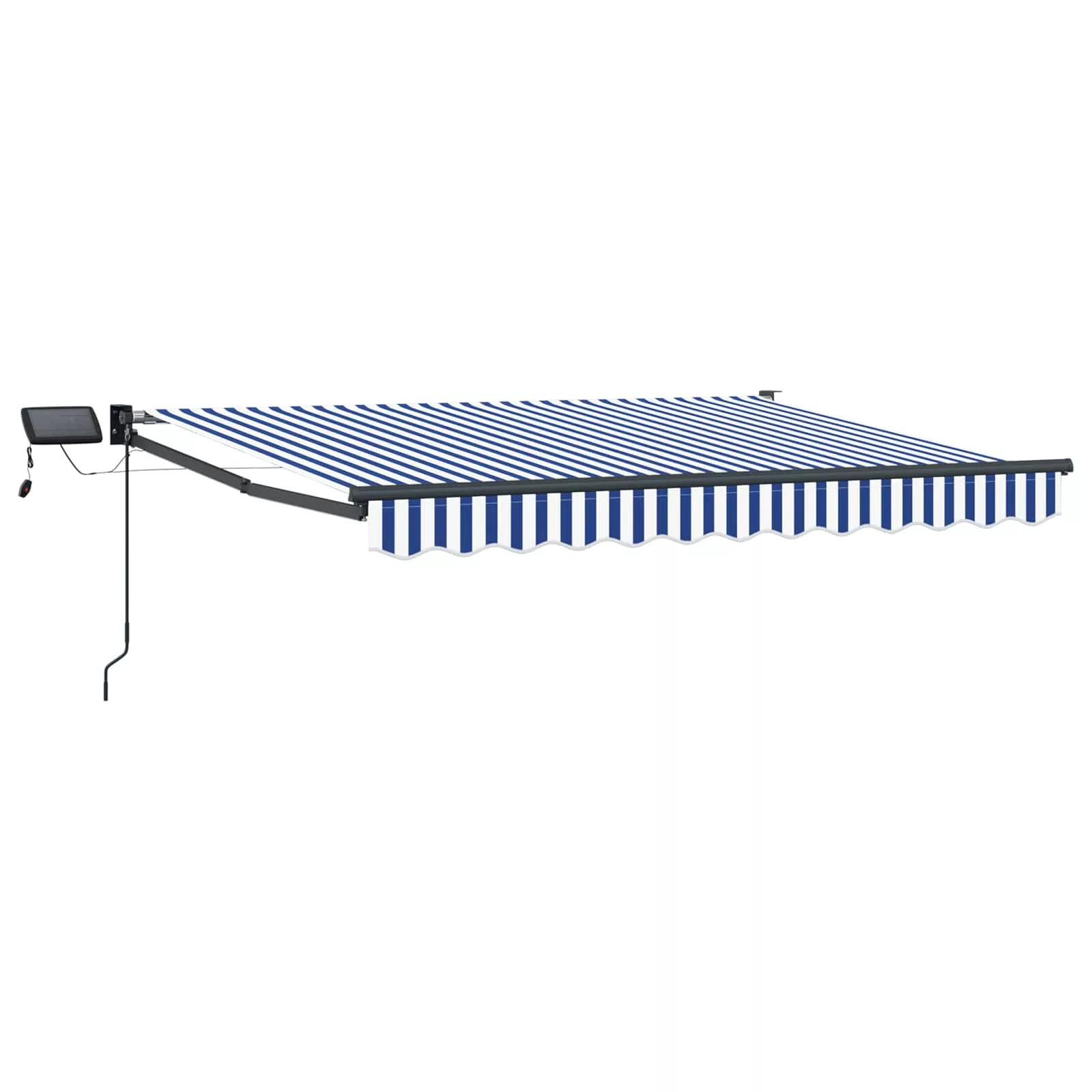 Ez a kültéri kézi napellenző napenergia-üzemeltetésű LED világítással árnyékot és fényt biztosít teraszoknak, balkonoknak és más szabadtéri helyeknek. A visszahúzható dizájnnak hála, az árnyékolót könnyen kinyújthatod vagy behúzhatod, így bármikor állíthatod a napfény erősségét.