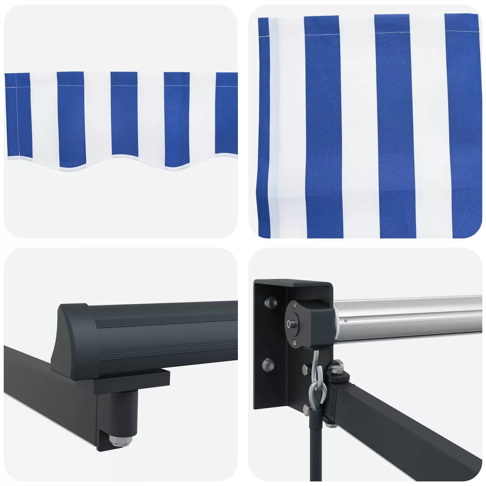 - Telepítési elemek: Minden szükséges szerelési kiegészítőt tartalmaz a telepítéshez. Kövesd a mellékelt utasításokat a napellenző összeszereléséhez és biztonságos telepítéséhez.
