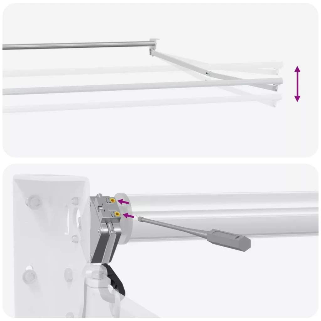 - Alumínium keret: A napernyő alumínium szerkezete robusztus támogatást ad az időjárás viszontagságaival szemben. Karcsú dizájnja fokozza a modern külsőt, egyesítve az esztétikát és a praktikummal. Csupán kültéri használatra készült, nagyon tartós, minimális karbantartást igényel.