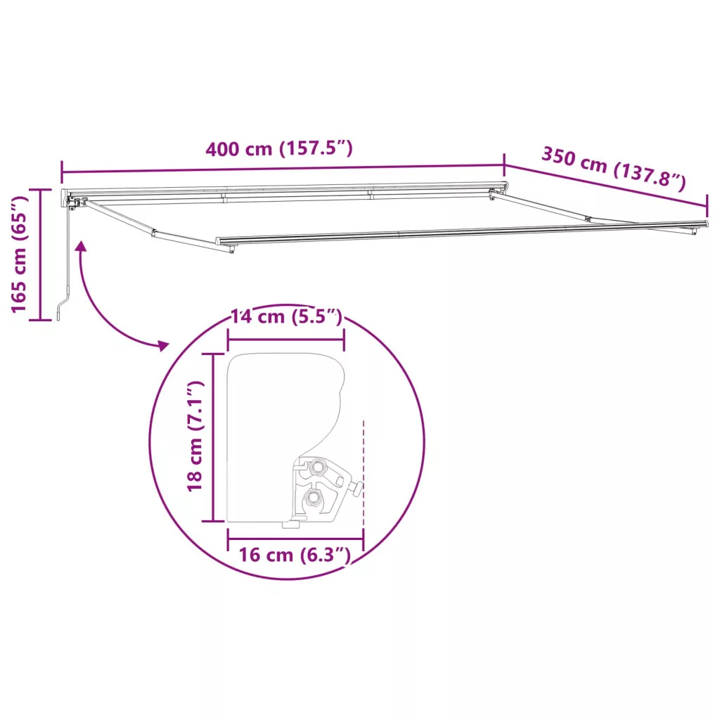 Ez a behúzható napellenző praktikus árnyékot nyújt a kültéri helyiségeknek, mint kertek és teraszok. Könnyen kihúzható vagy behúzható, szóval simán állíthatod, mennyi napfényre vagy árnyékra van szükséged. Remek választás tevékenységekhez, mint a kerti étkezés, pihenés vagy vendégfogadás, hiszen kellemes környezetet teremt, védelmet adva a nap és az enyhe eső ellen. A napellenző tökéletes eszköz a kültéri helyek maximális kihasználásához egész évben.