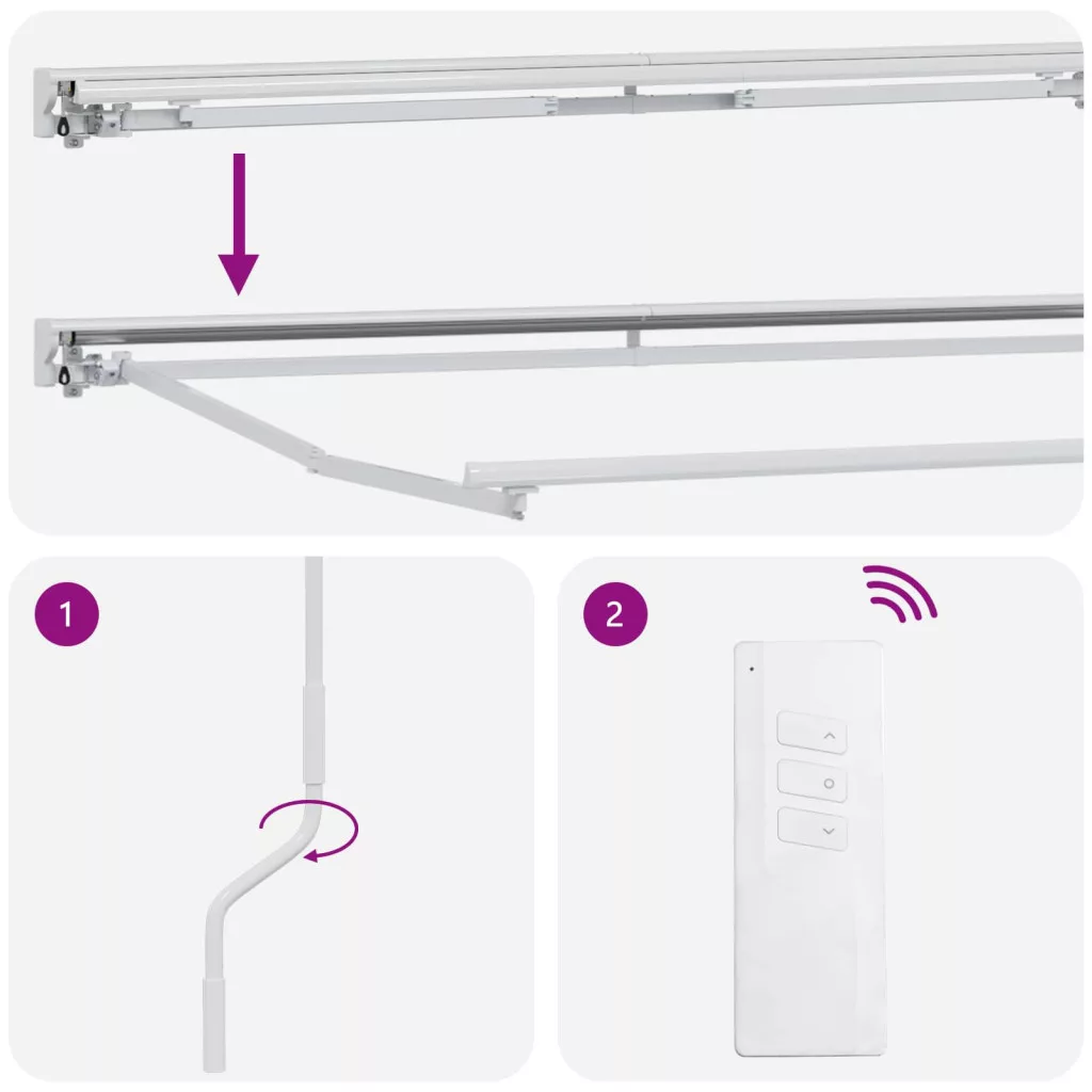 - Kézi hajtókarral vagy elektromos távirányítóval is elérhető