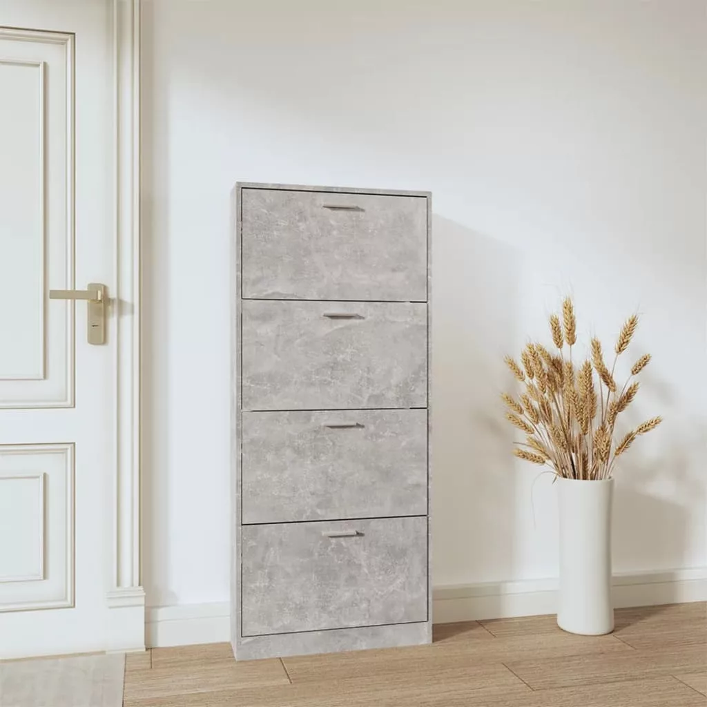 vidaXL betonszürke szerelt fa cipőszekrény 59x17x150 cm