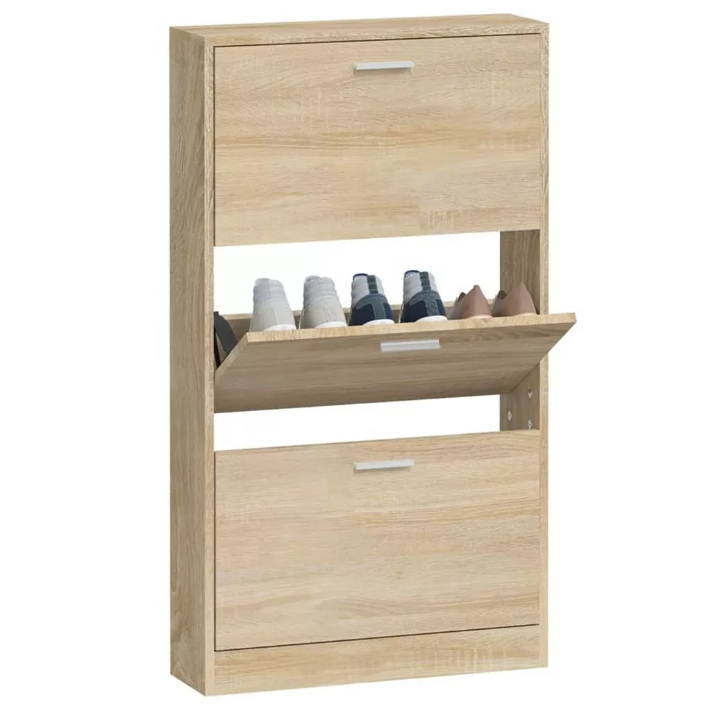 vidaXL tölgyszínű szerelt fa cipősszekrény 59x17x108 cm