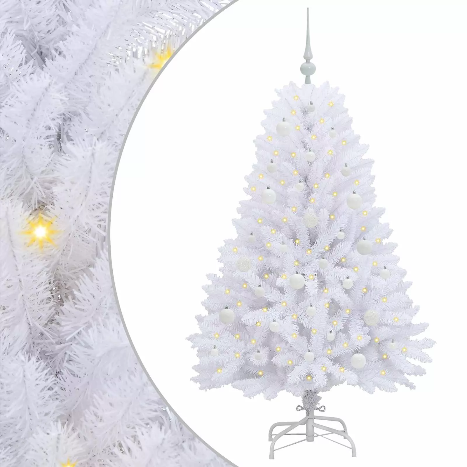 - Kopásálló anyagok: PVC-ből és acélból készült, ez a karácsonyfát kopásállósággal büszkélkedik, ami hosszú élettartamot és friss megjelenést ad több ünnepi szezon során. Ez az anyag élethű benyomást kelt anélkül, hogy lehullana, megőrizve az eleganciát beltéren vagy védett kültéren.